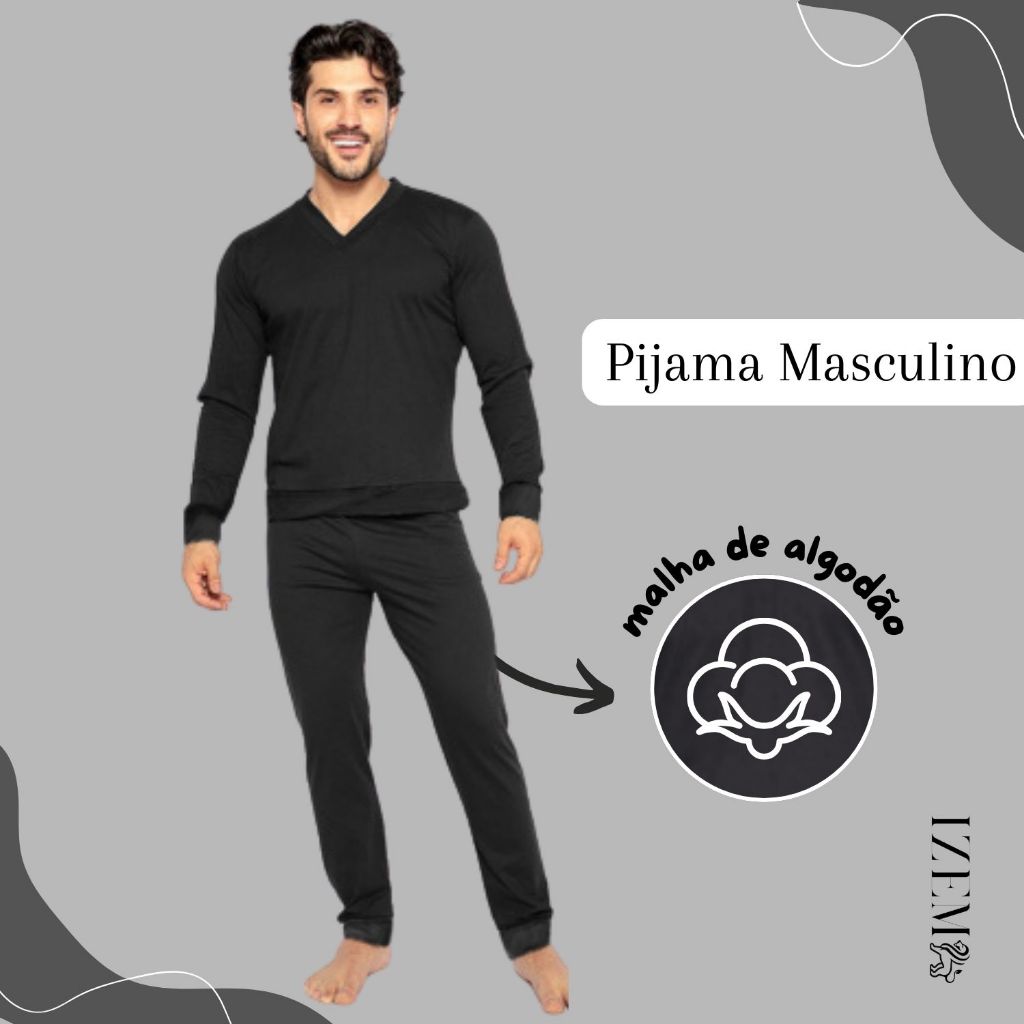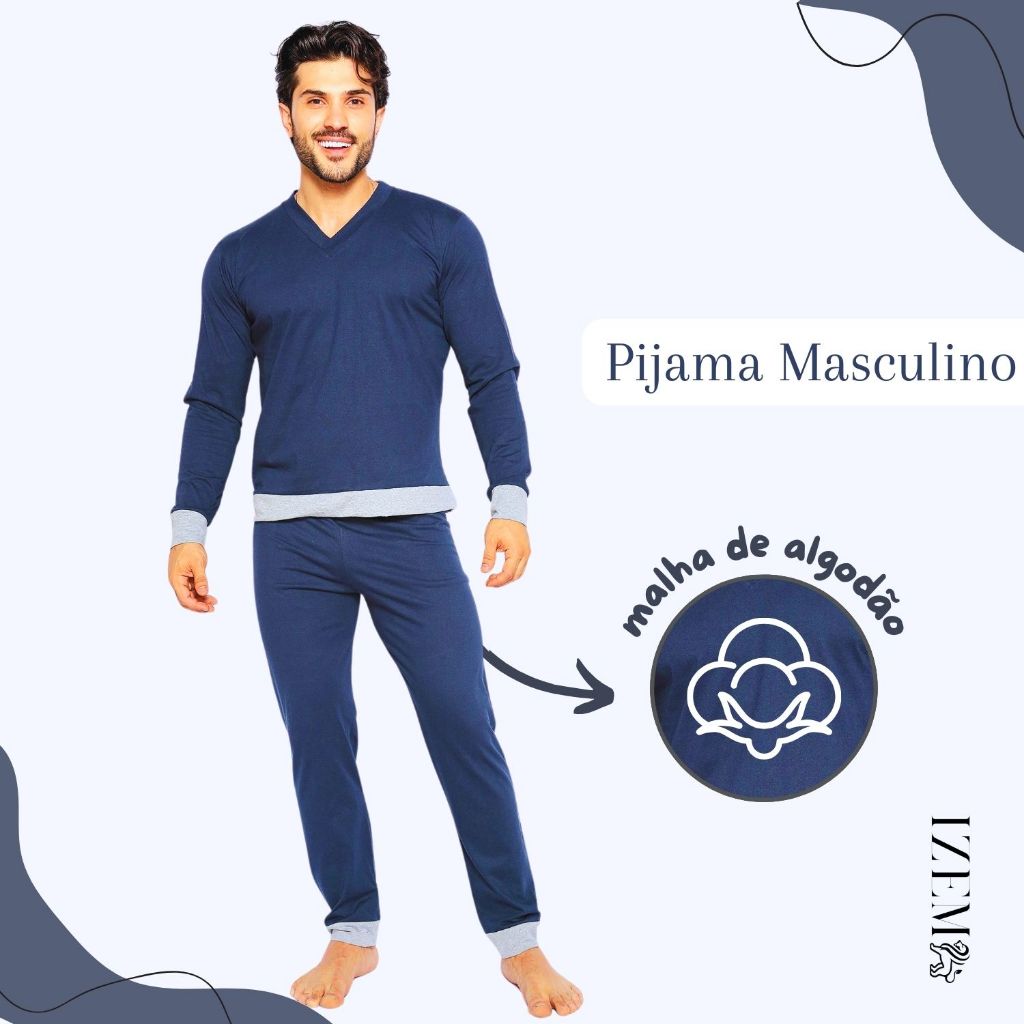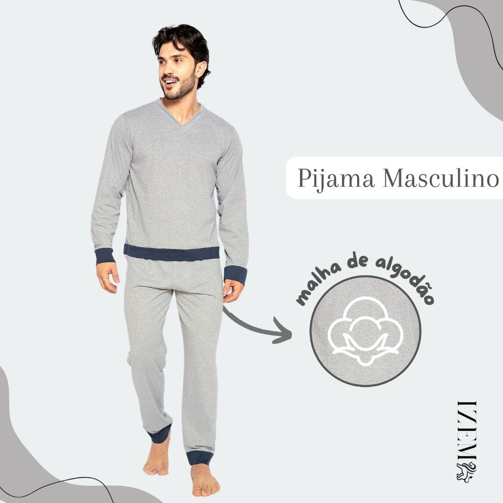 Pijama Masculino Algodão Manga Longa de Frio Inverno