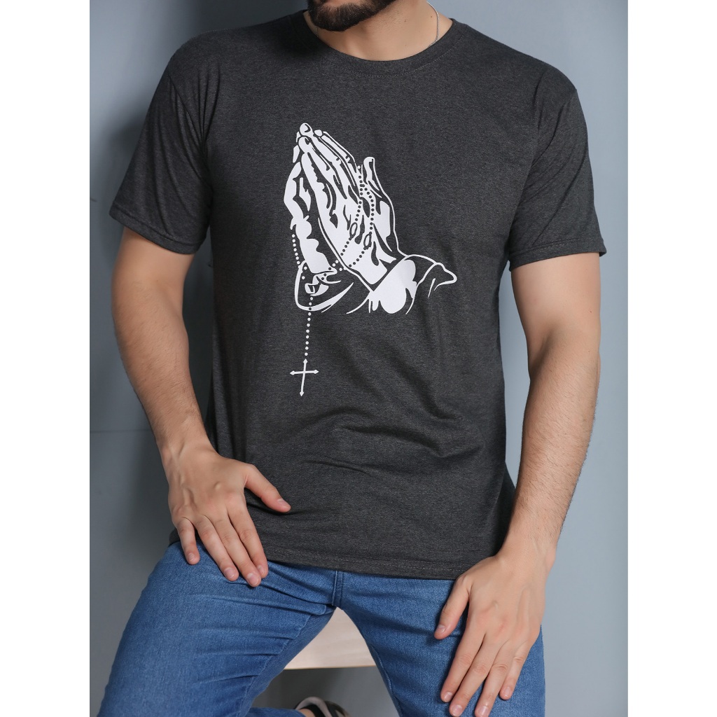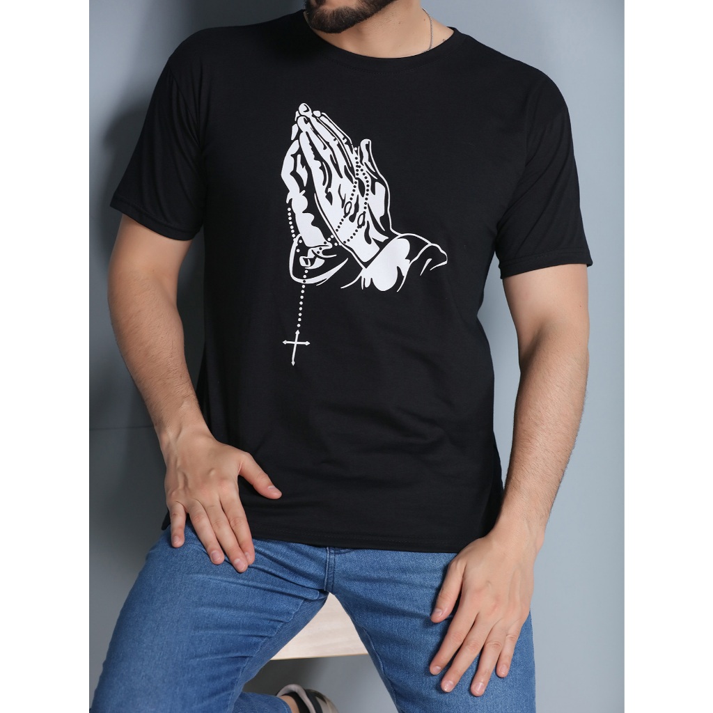 Camiseta Masculina Manga Curta Mao Jesus Fe Cristo Estampada Masculino Unissex