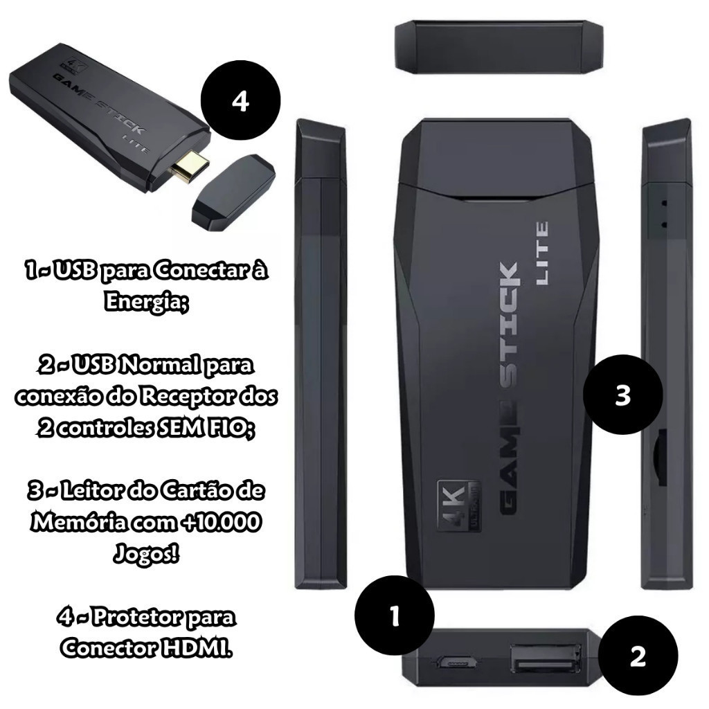 Video Game Stick 10 mil Jogos Retrô Antigo 4K Controle Sem Fio Portátil Original Presente