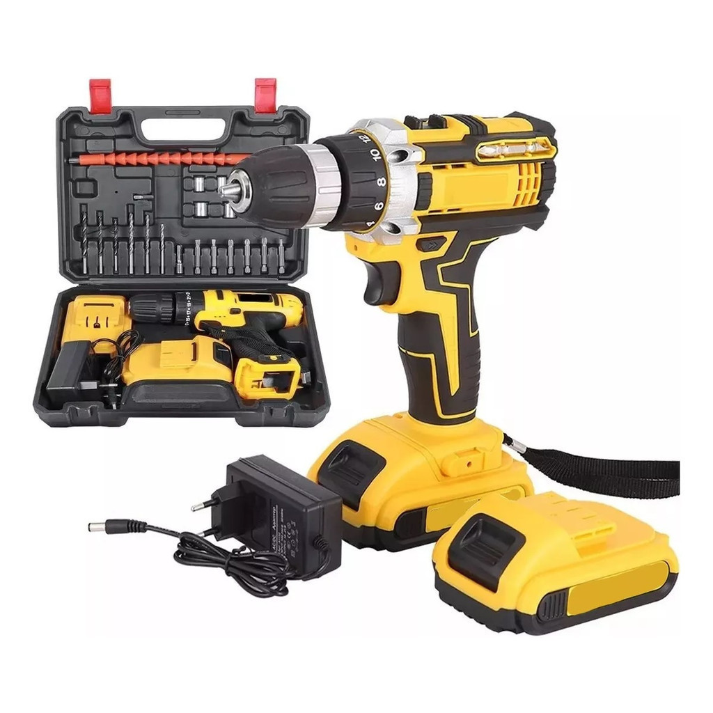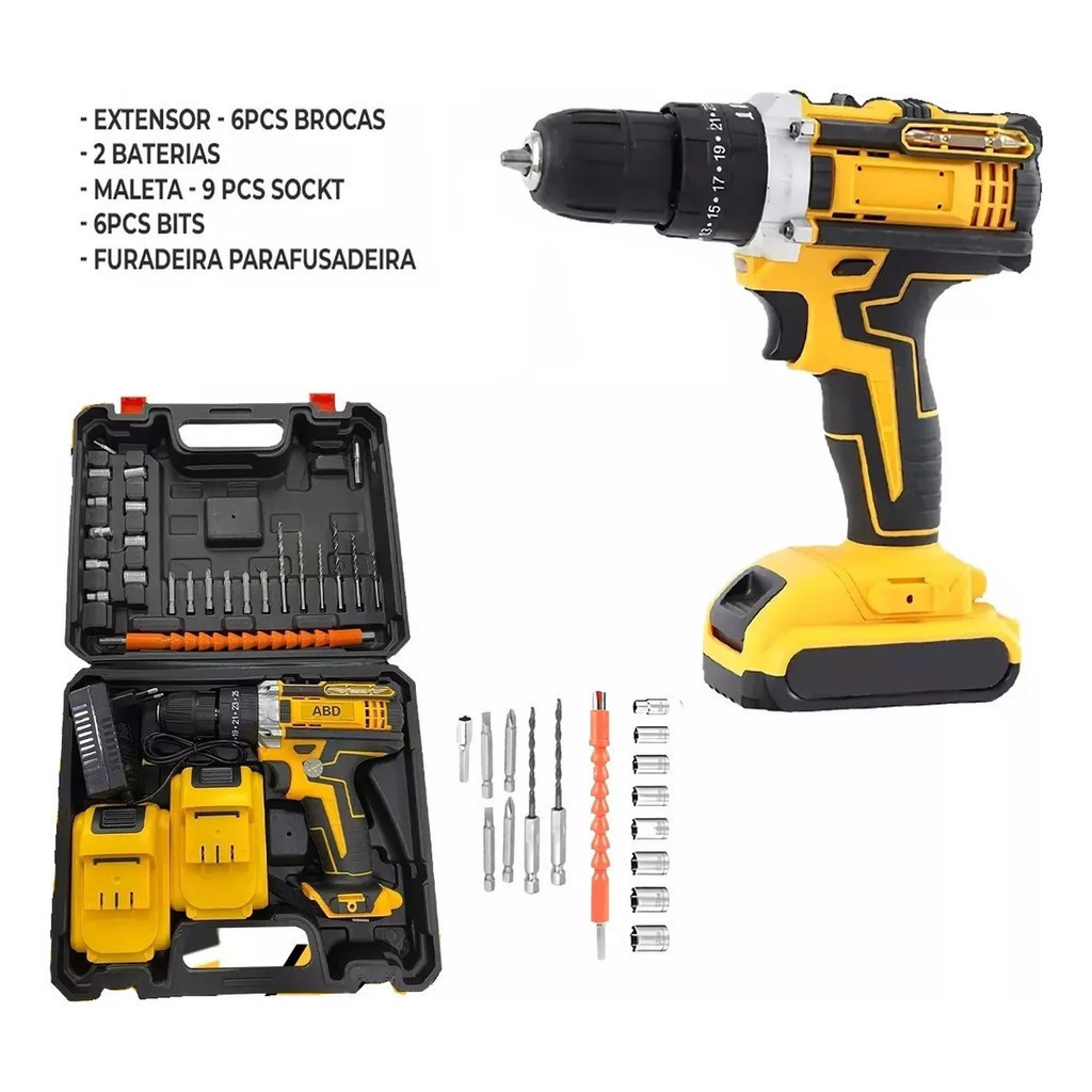 Parafusadeira 2 Baterias 48v Furadeira Maleta 24pcs Pronta Entrega
