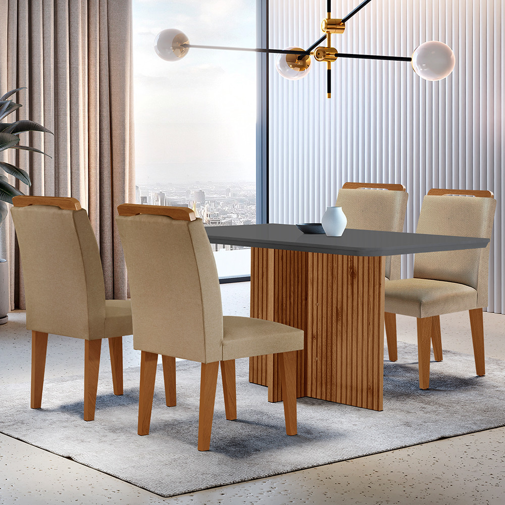 Sala de Jantar Mesa Olímpia 120CM em MDF e 4 Cadeiras Athenas Moderna