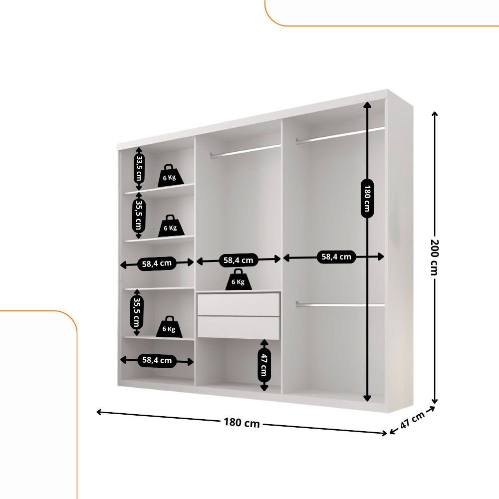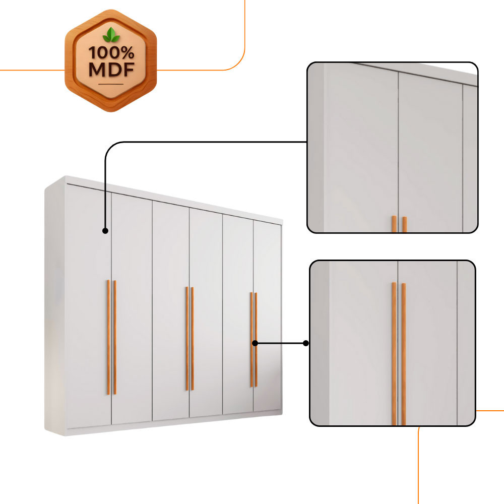 Guarda Roupa Infantil Sofia 100% MDF 6 Portas e 2 Gavetas Moderna Mobília