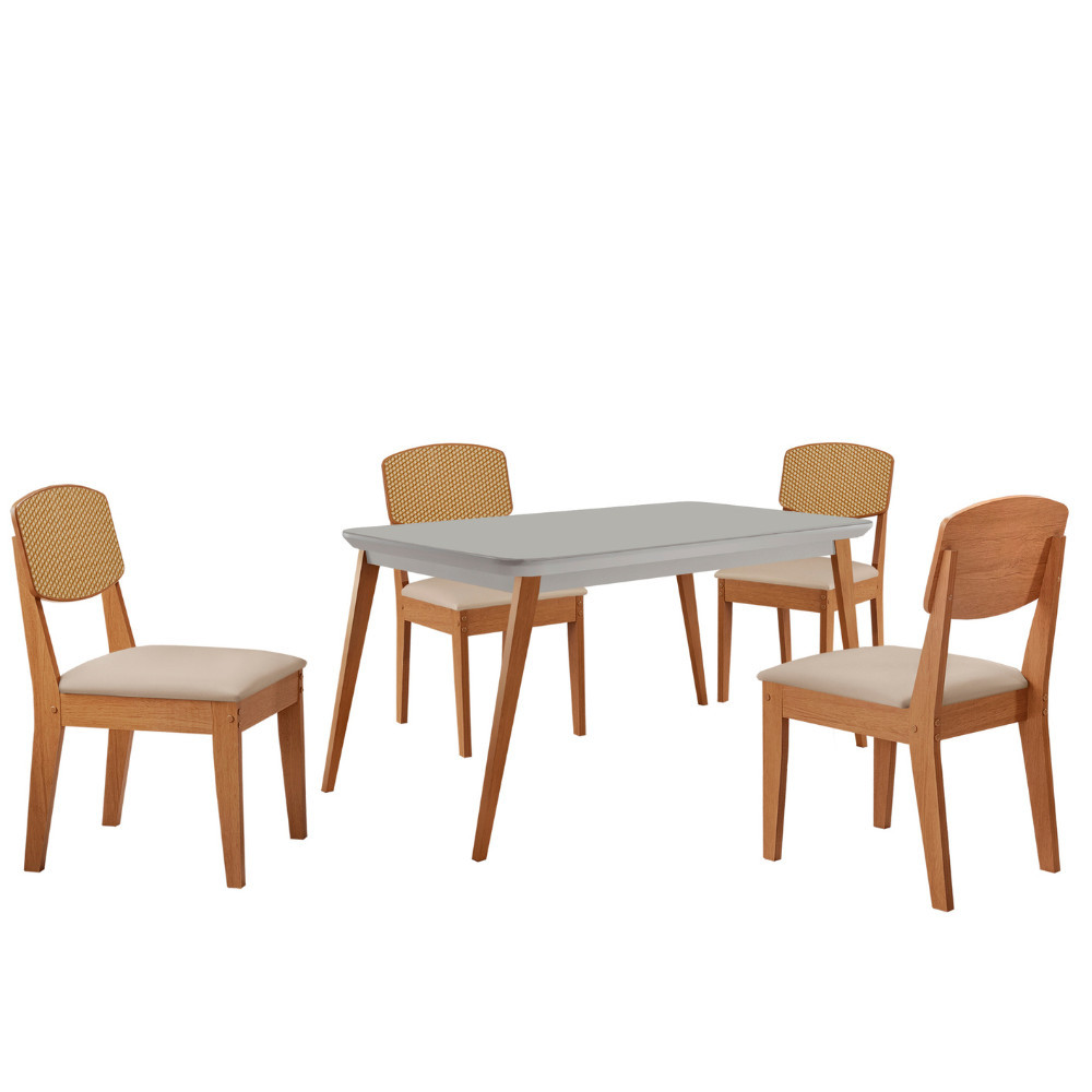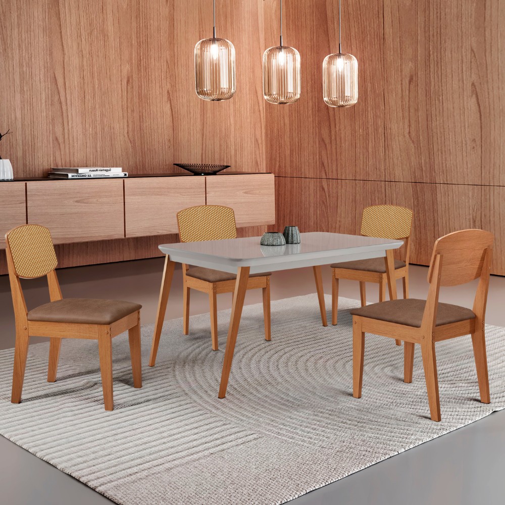 Mesa de Jantar Copper 120cm Tampo Canto Copo MDF Vidro com 4 Cadeiras Copper Premium Moderna Mobília