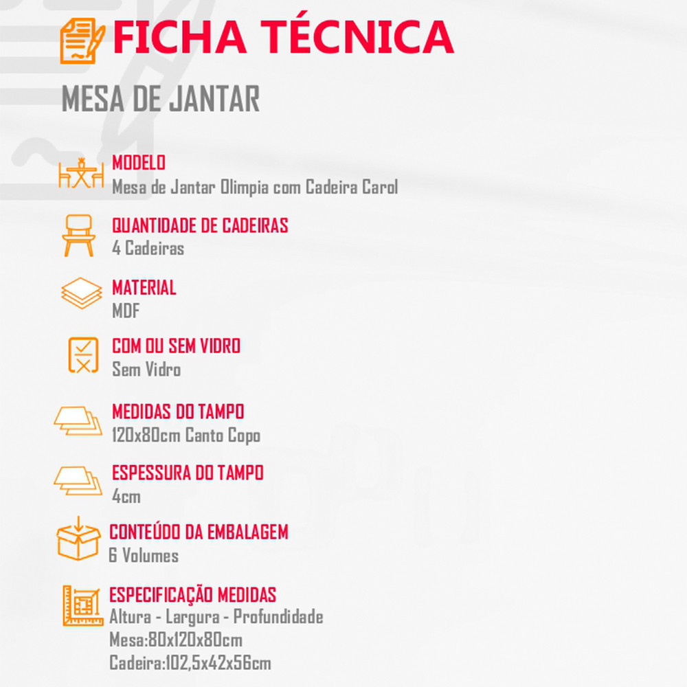 Conjunto Sala de Jantar Mesa Olímpia 120CM MDF Canto Copo com 4 Cadeiras Carol Moderna