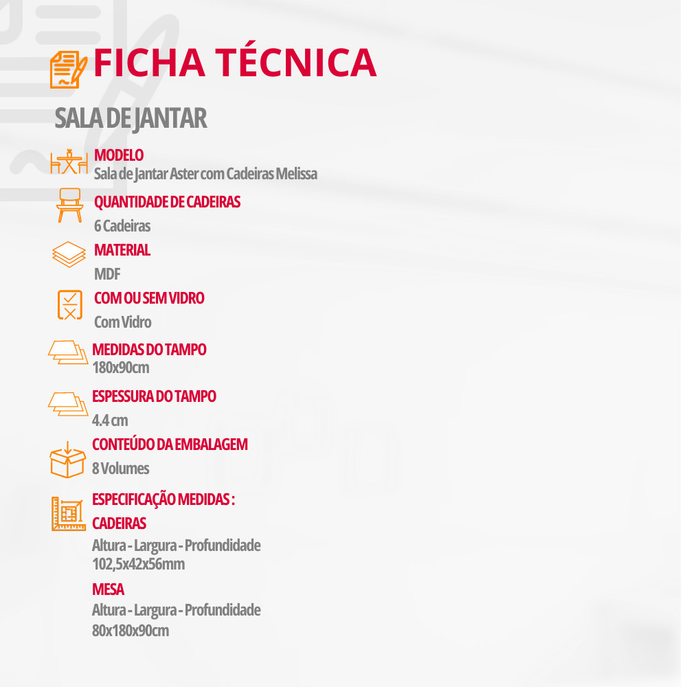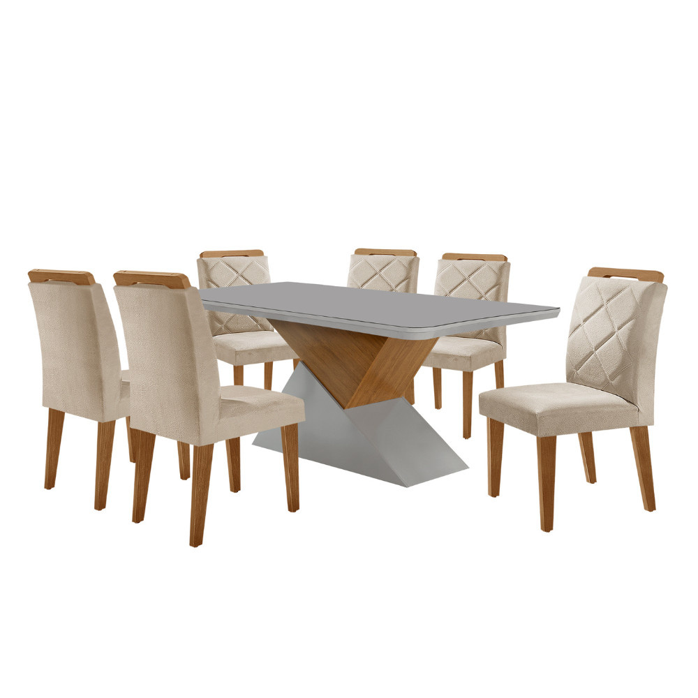 Mesa para Sala de Jantar Aster 180cm MDF Canto Copo com Vidro e 6 Cadeiras Melissa Moderna Mobília