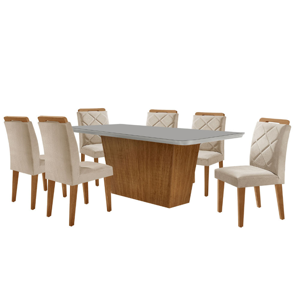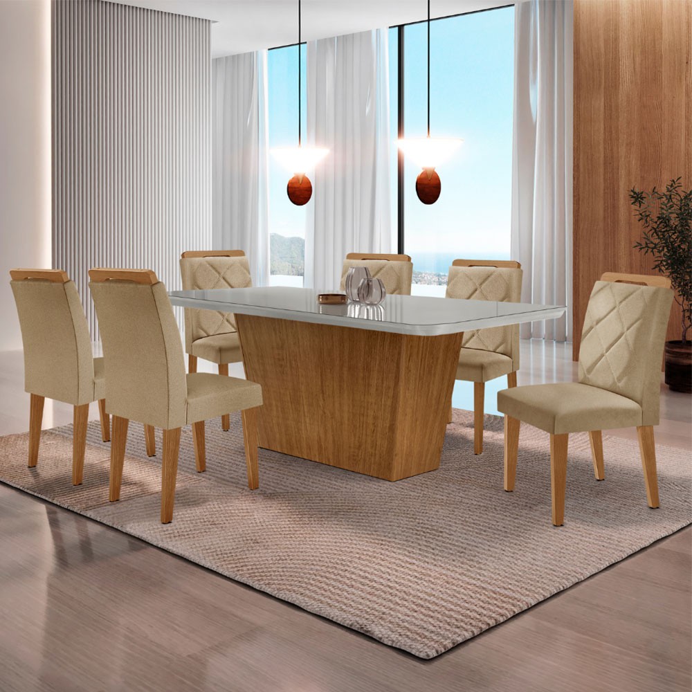 Mesa para Sala de Jantar Aida 180cm MDF Canto Copo com Vidro e 6 Cadeiras Melissa
