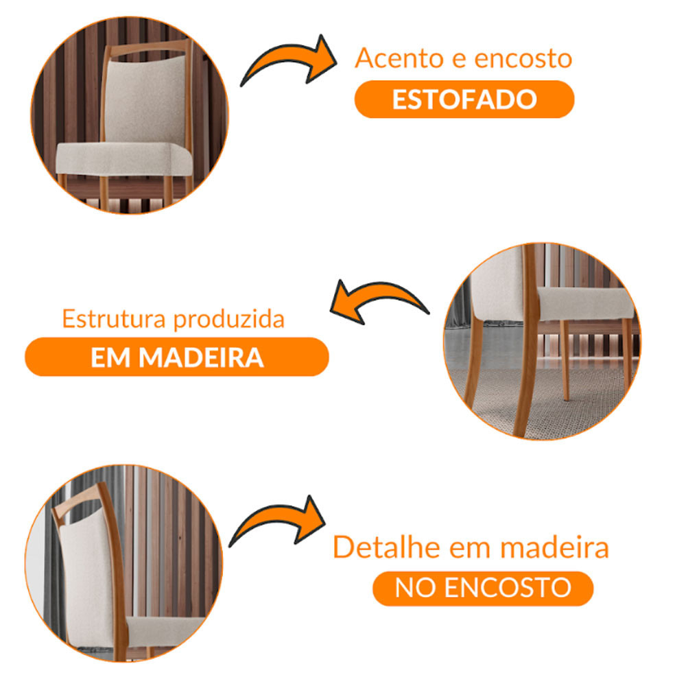 Conjunto com 2 cadeiras Munique em Madeira Maciça para Sala de Jantar Moderna Mobília