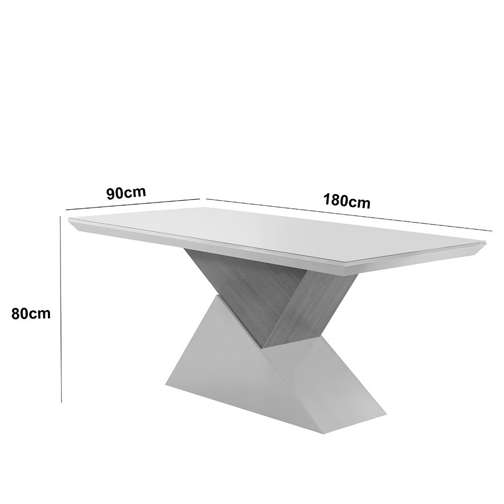 Mesa Aster 180 Cm Tampo Em MDF e Vidro Com Canto Reto