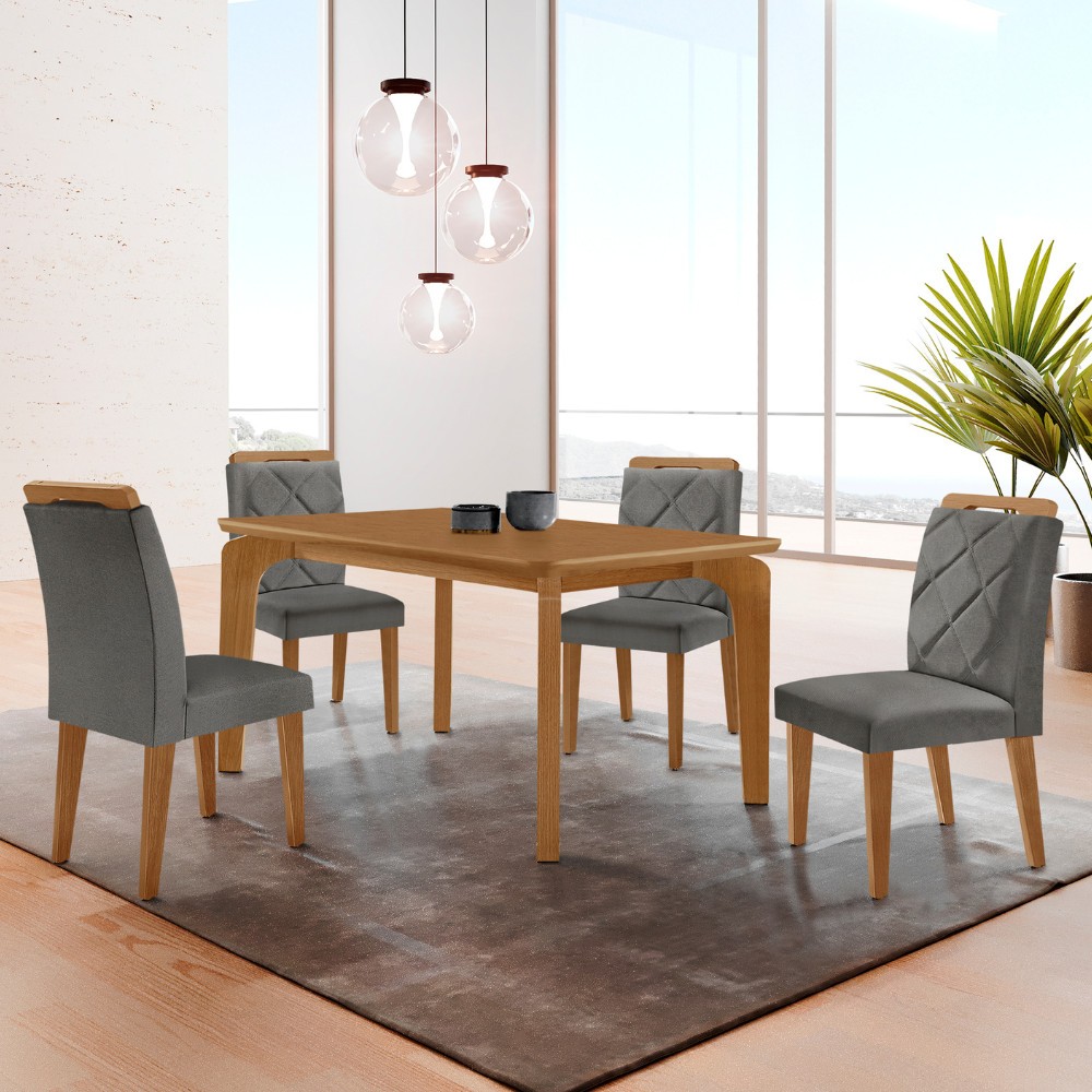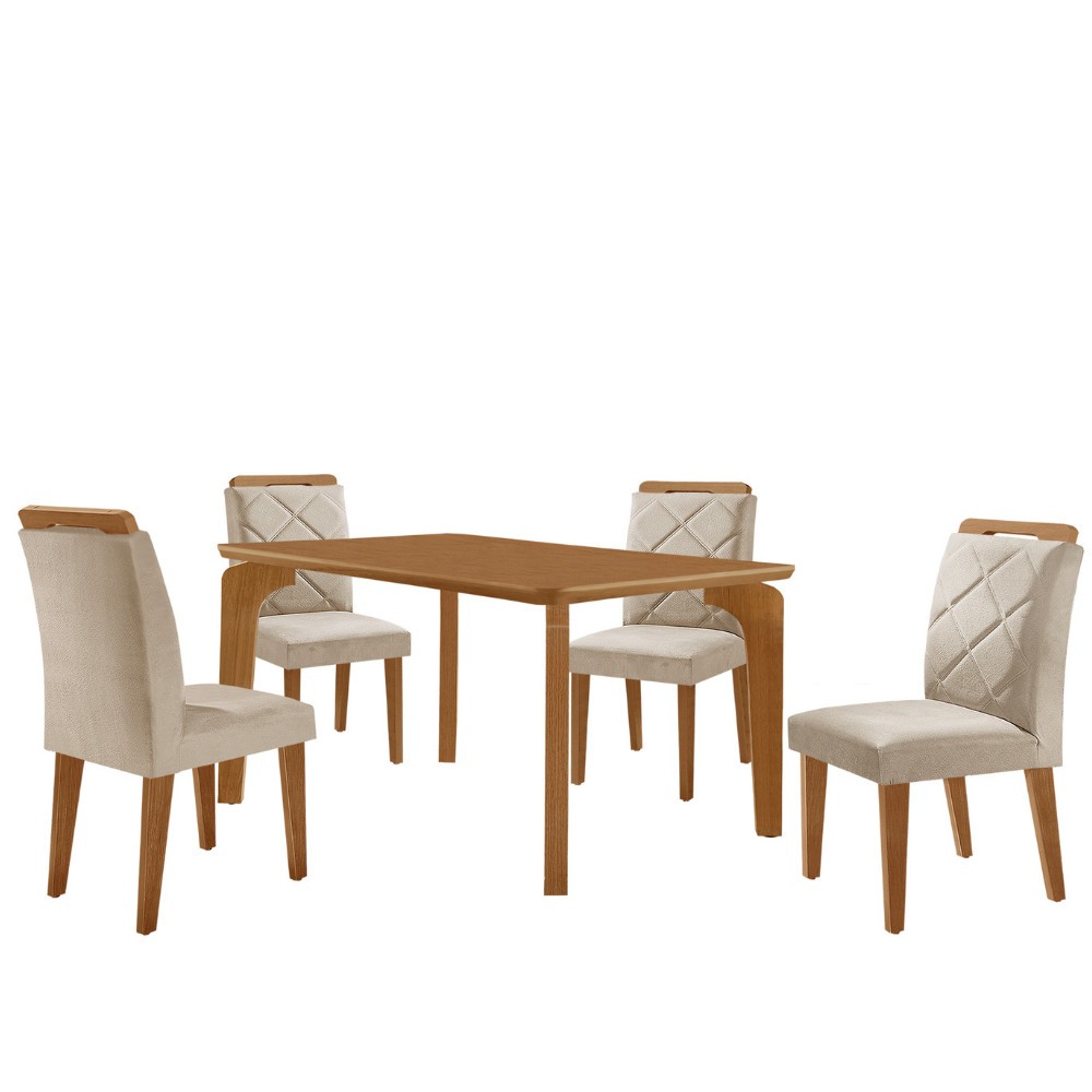 Mesa de Jantar Liz 120cm MDF Canto copo e com 4 Cadeiras Melissa
