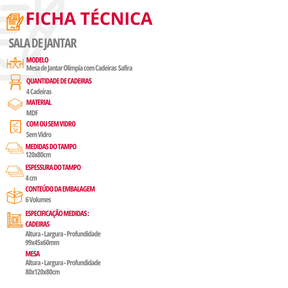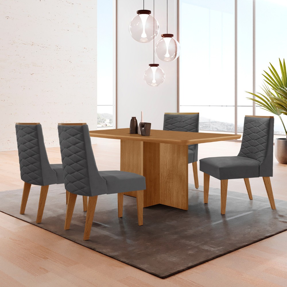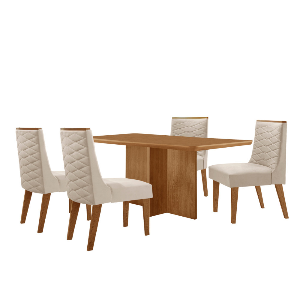Mesa de Jantar Olímpia 120cm MDF Canto copo e com 4 Cadeiras Safira