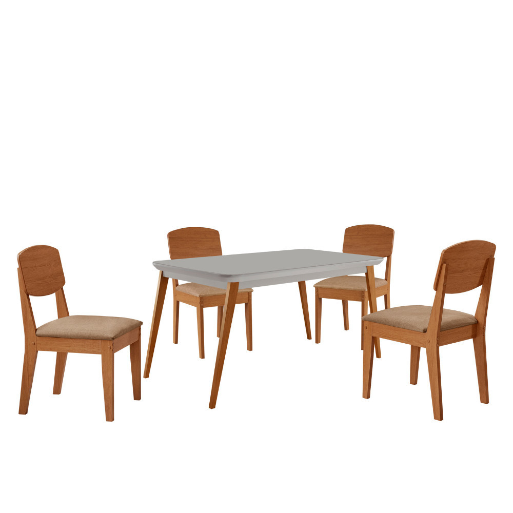 Mesa de Jantar Copper 120cm Tampo Canto Copo MDF Vidro com 4 Cadeiras Copper Moderna Mobília