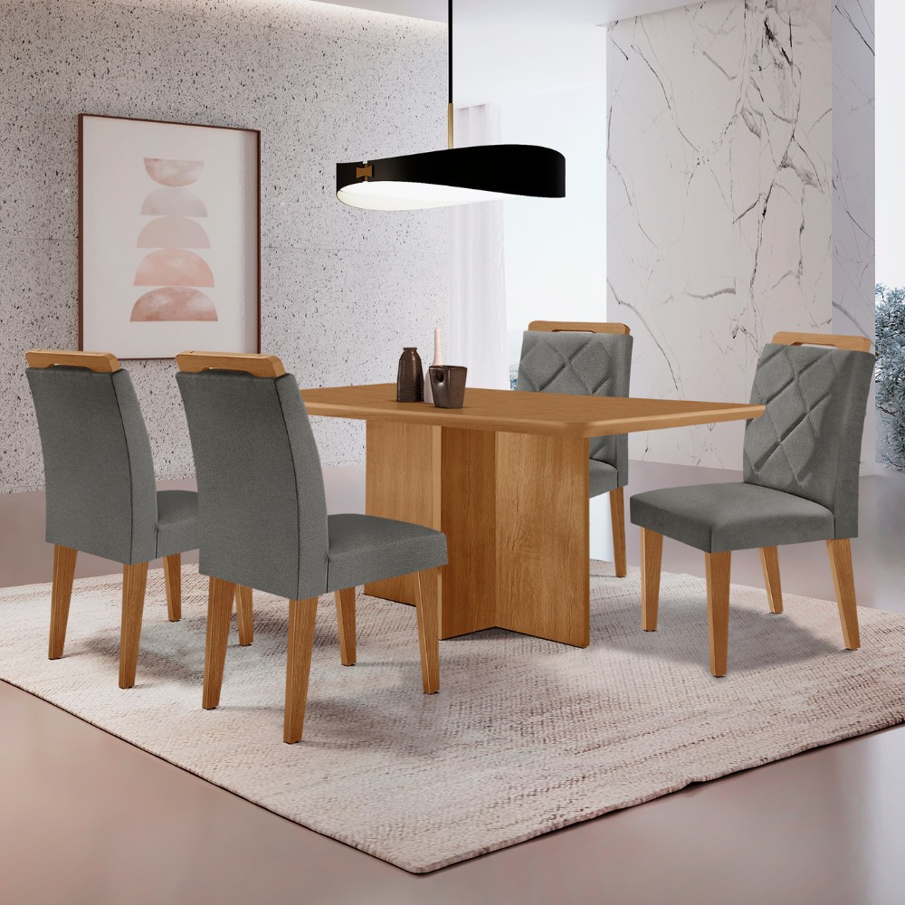 Conjunto Mesa de Jantar Olímpia 120cm MDF Canto copo e com 4 Cadeiras Melissa