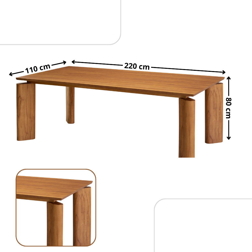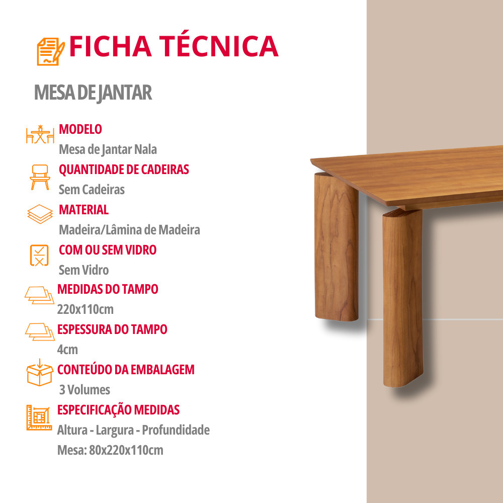 Mesa Nala 220cm Tampo Laminado Canto Moeda Moderna Mobília