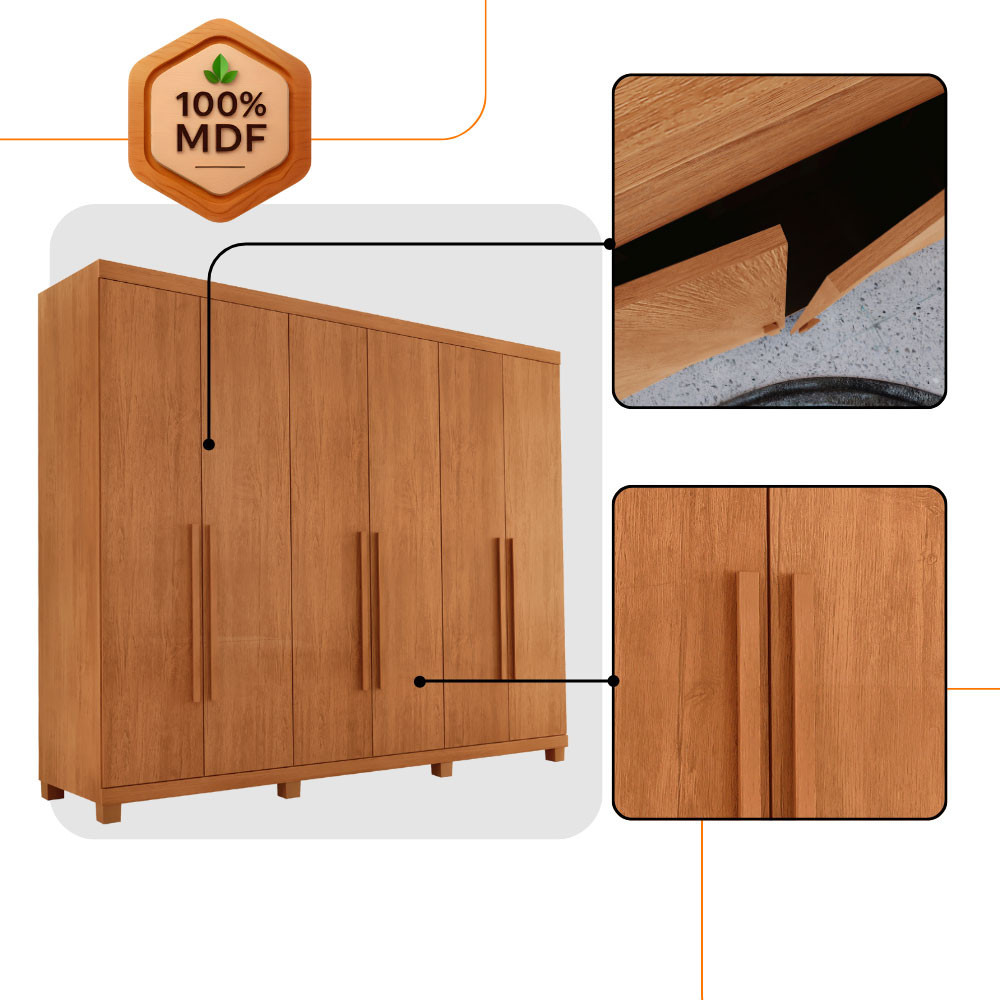 Guarda Roupa Casal Maya 100 MDF 6 Portas e 6 Gavetas com pés Moderna Mobília