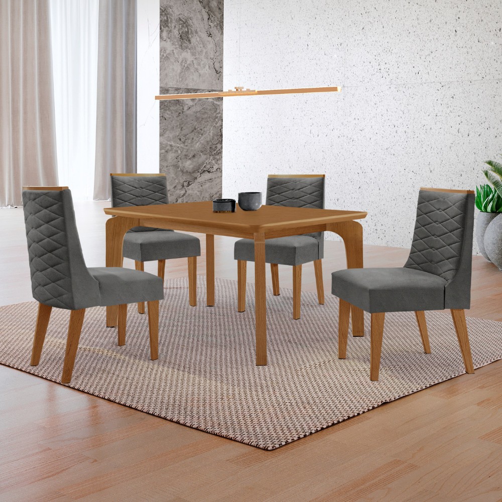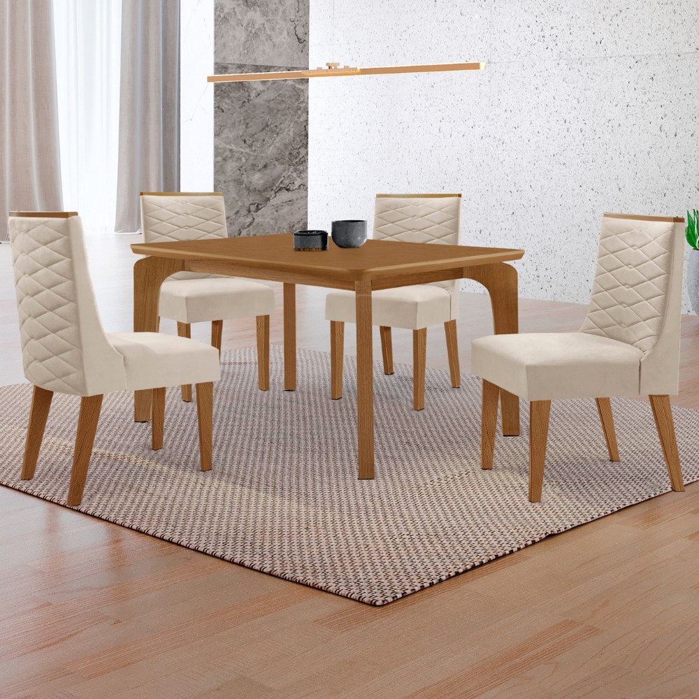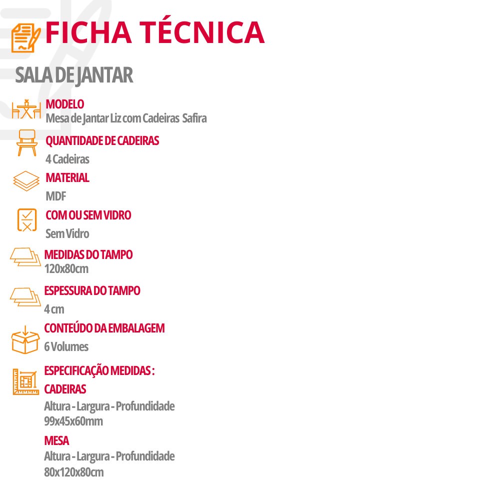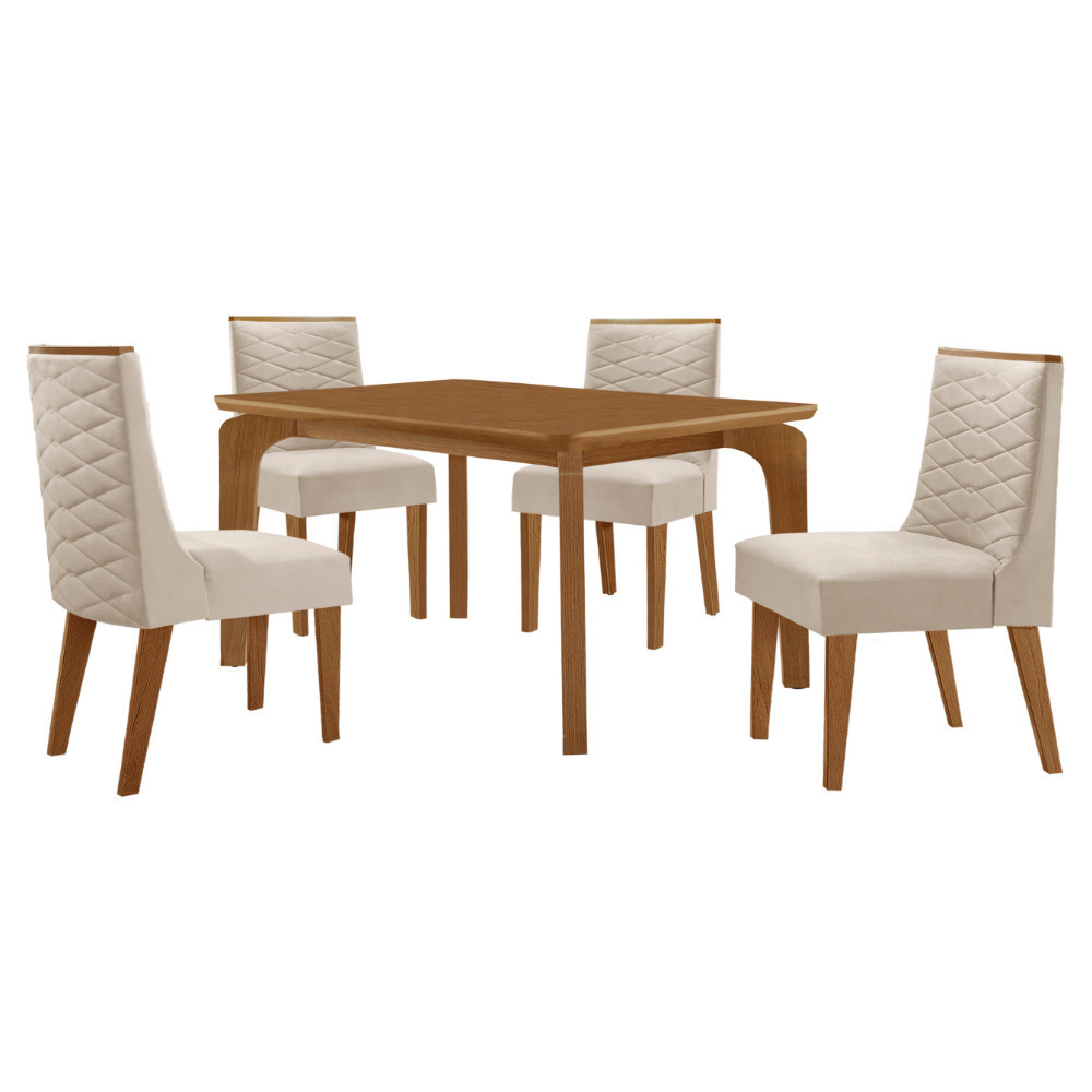 Mesa de Jantar Liz 120cm MDF Canto copo e com 4 Cadeiras Safira
