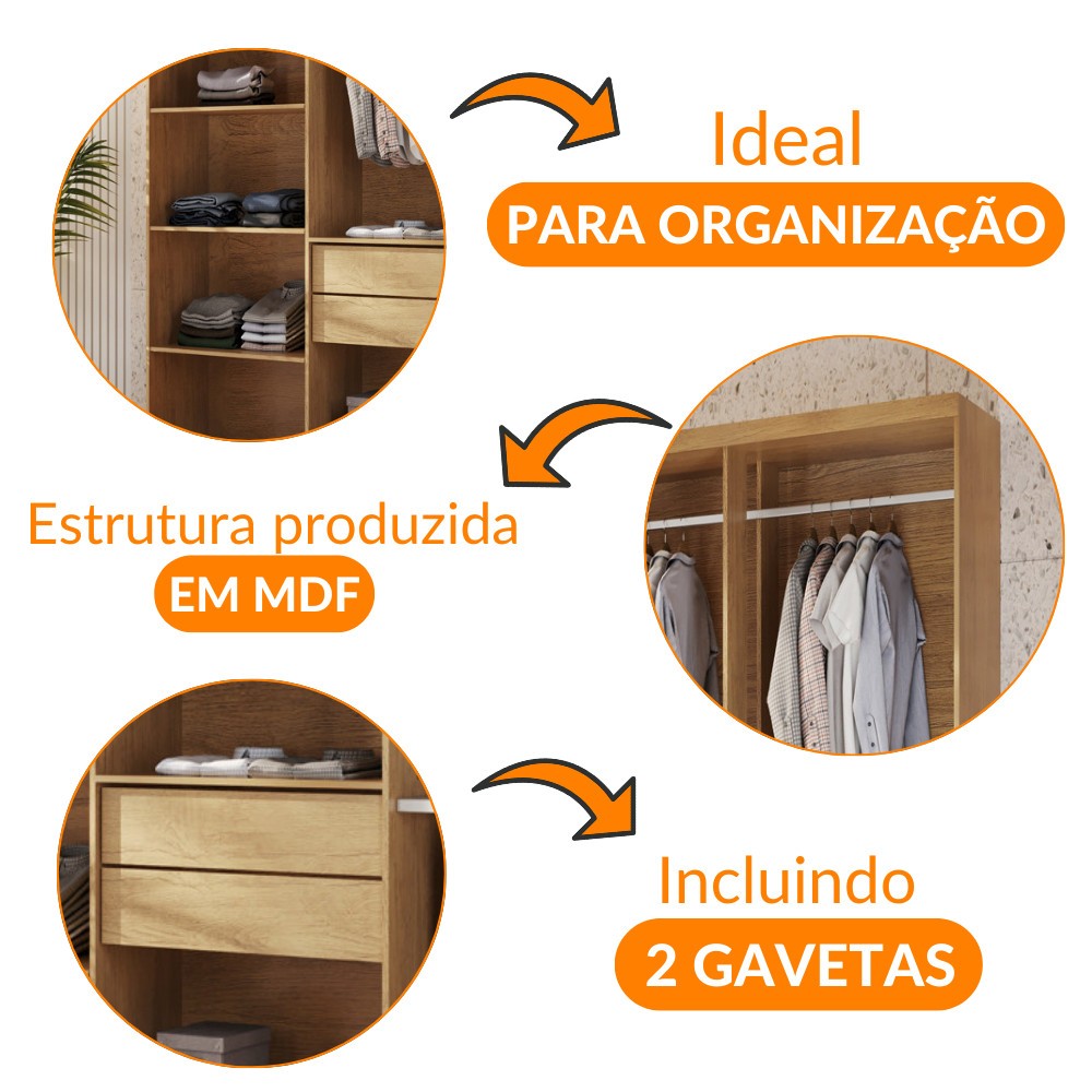Closet Casal Hera 2 Gavetas 5 Prateleiras MDF Rufato