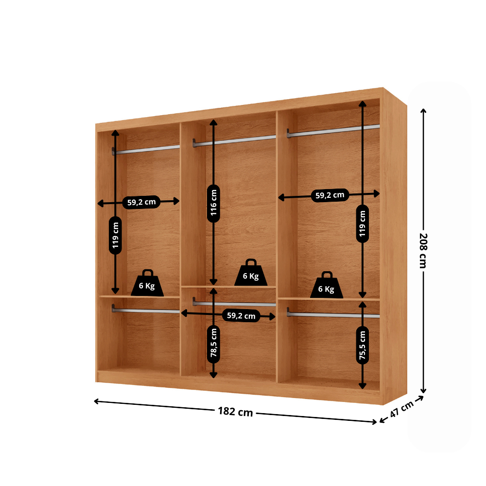 Guarda Roupa Casal Connor 100% MDF 3 Portas de Correr Moderna Mobília
