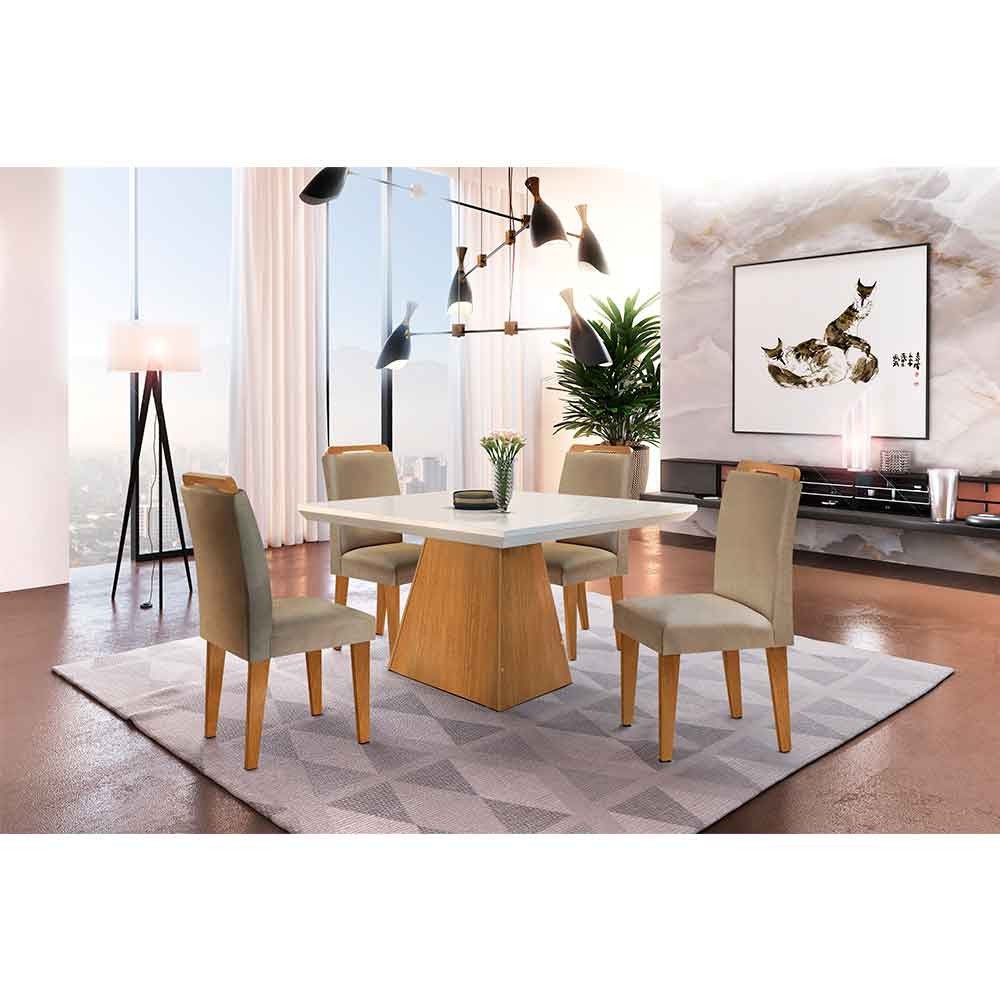 Sala de Jantar Aida 90 TP MDF Canto Reto com 4 Cadeiras Rufato