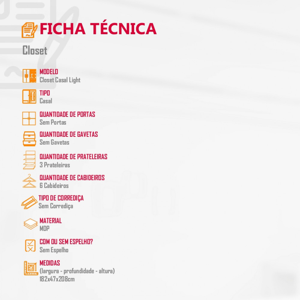 Closet Light 3 prateleiras e 6 cabideiros convencional MDF Moderna
