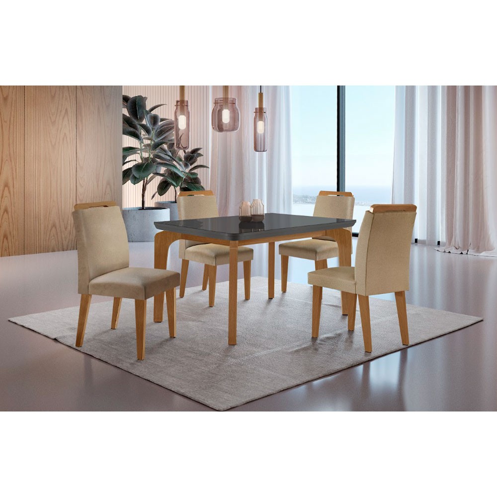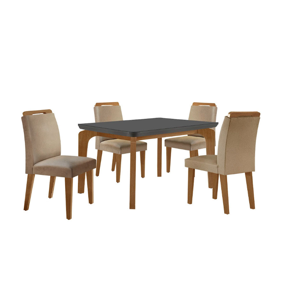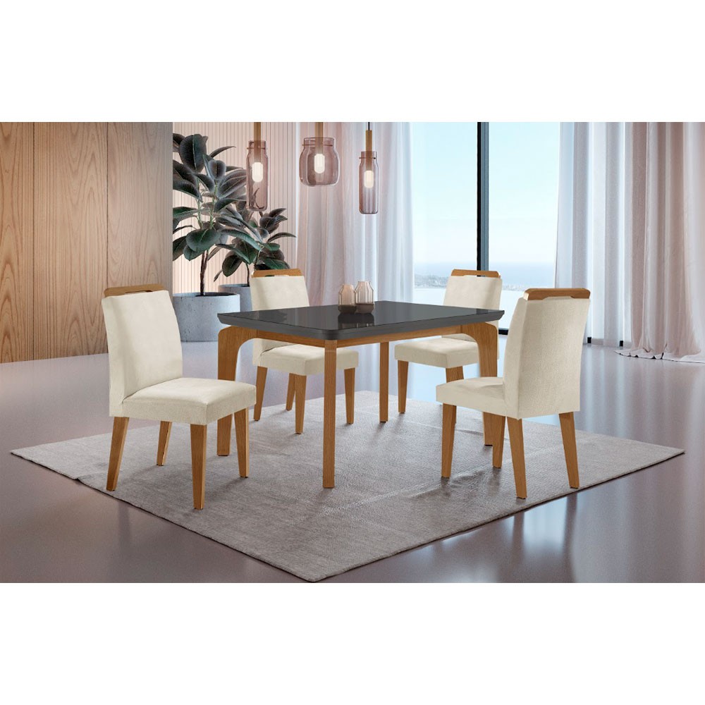 Conjunto Sala de Jantar Mesa Liz 120cm com Vidro Canto Copo e 4 Cadeiras Athenas Moderna