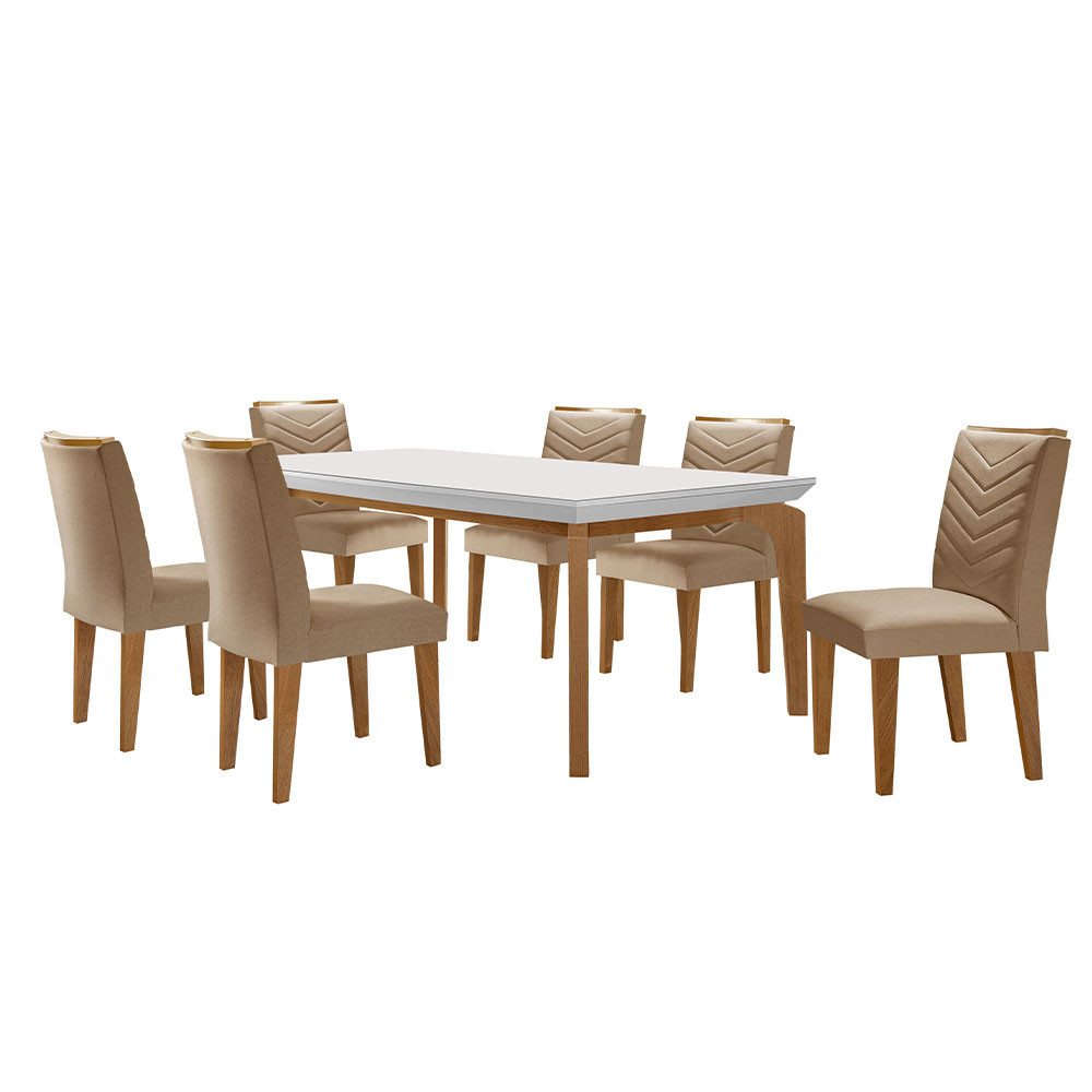 Conjunto Sala de Jantar Mesa Liz 180 cm com Vidro e 6 Cadeiras Liz