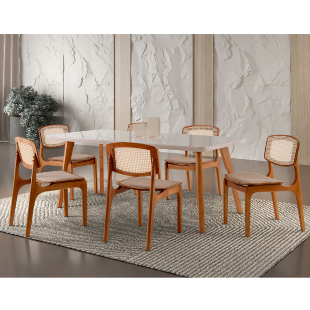 Conjunto Sala de Jantar Mesa Malta 160cm com 6 Cadeiras Malta Premium em Madeira Moderna