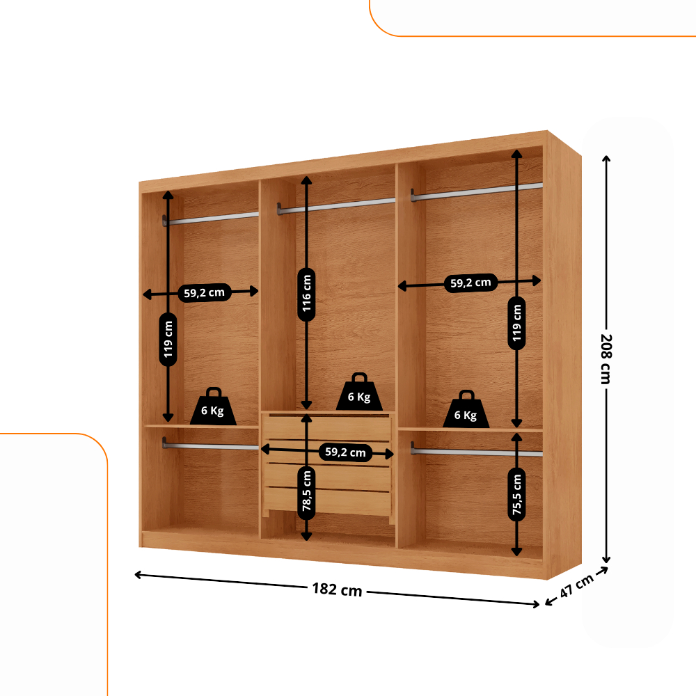 Guarda Roupa Casal Connor 100% MDF 3 Portas e 4 Gavetas - Moderna Mobília