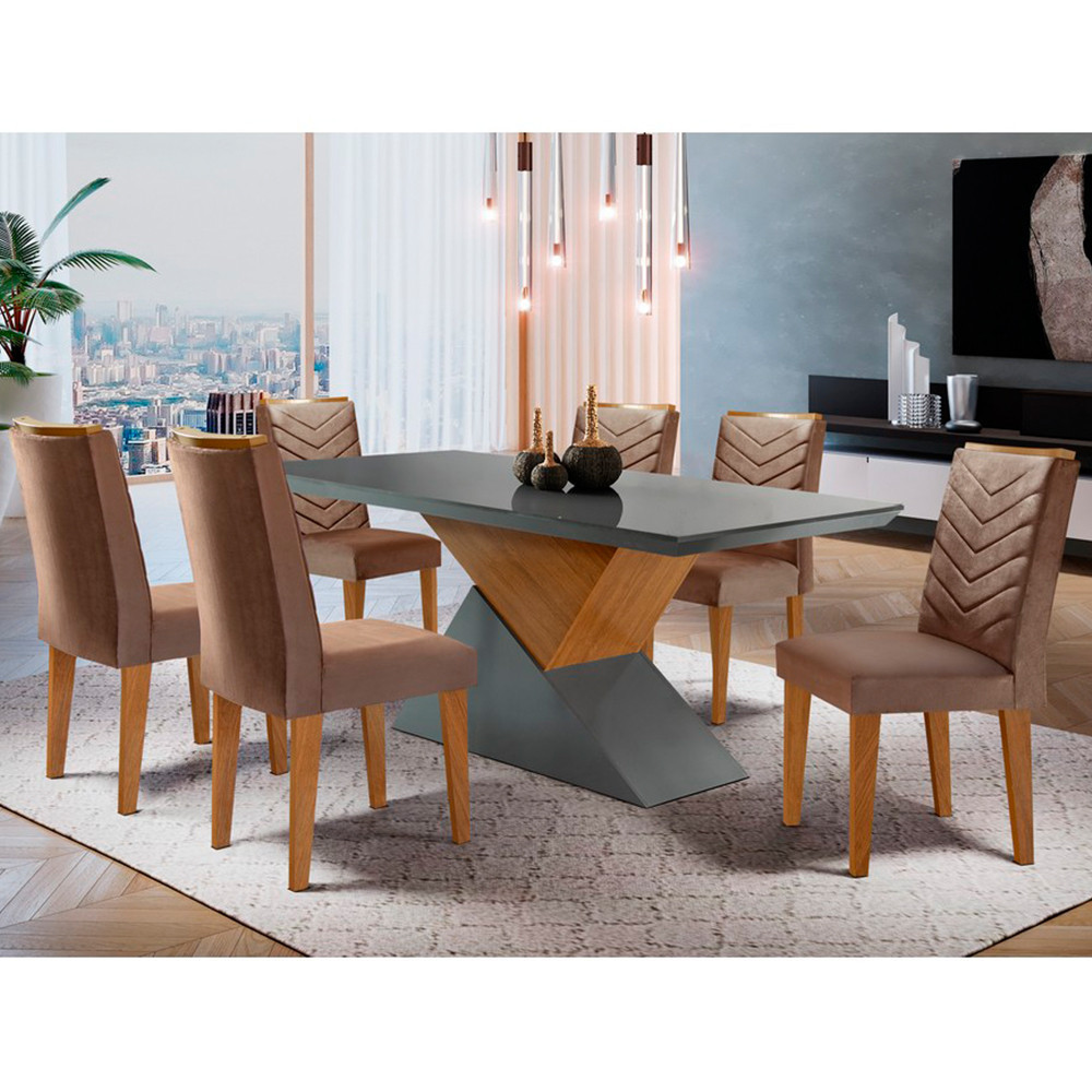 Conjunto Sala de Jantar Aster 180 Tampo em MDF Canto Reto com 6 Cadeiras Liz Moderna
