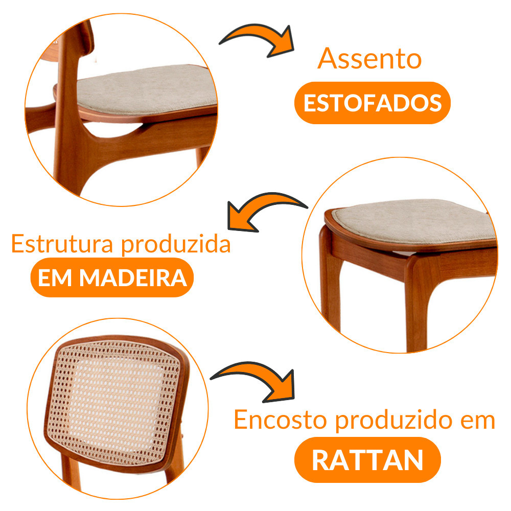 Conjunto com 2 cadeiras Malta Premium em Madeira Maciça para Sala de Jantar Moderna Mobília