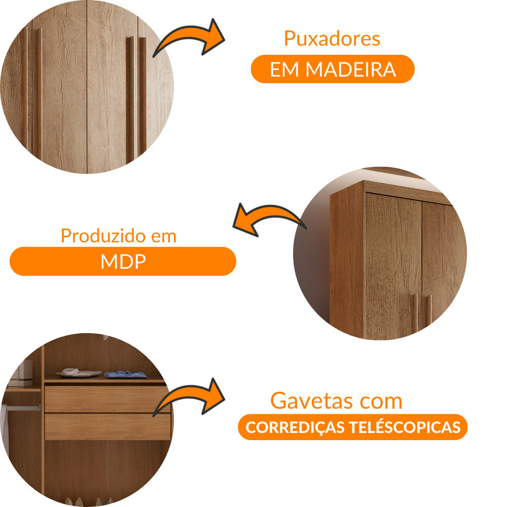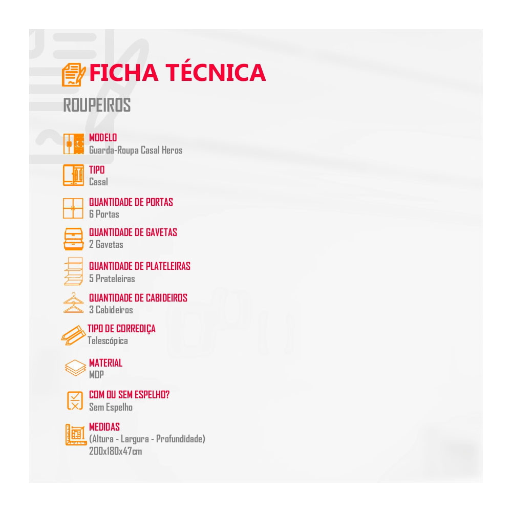 Guarda Roupa Casal Heros 6 Portas e 2 Gavetas MDF Moderna