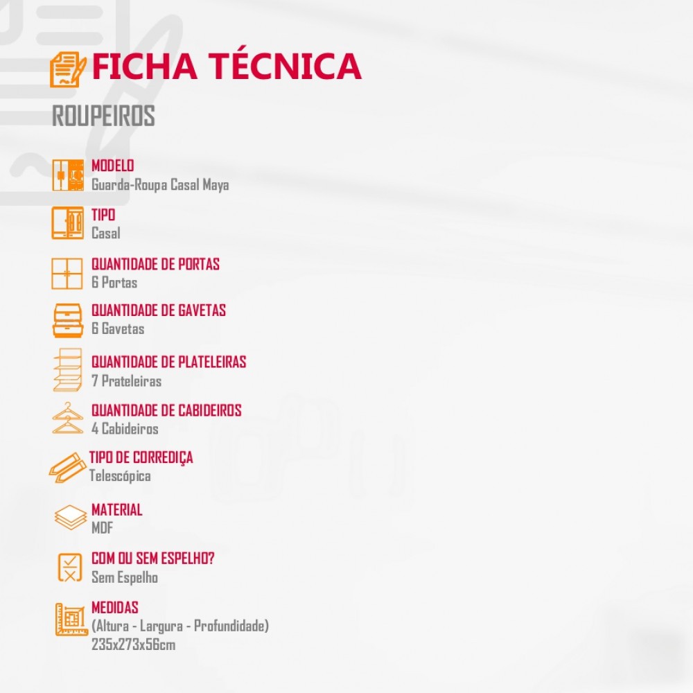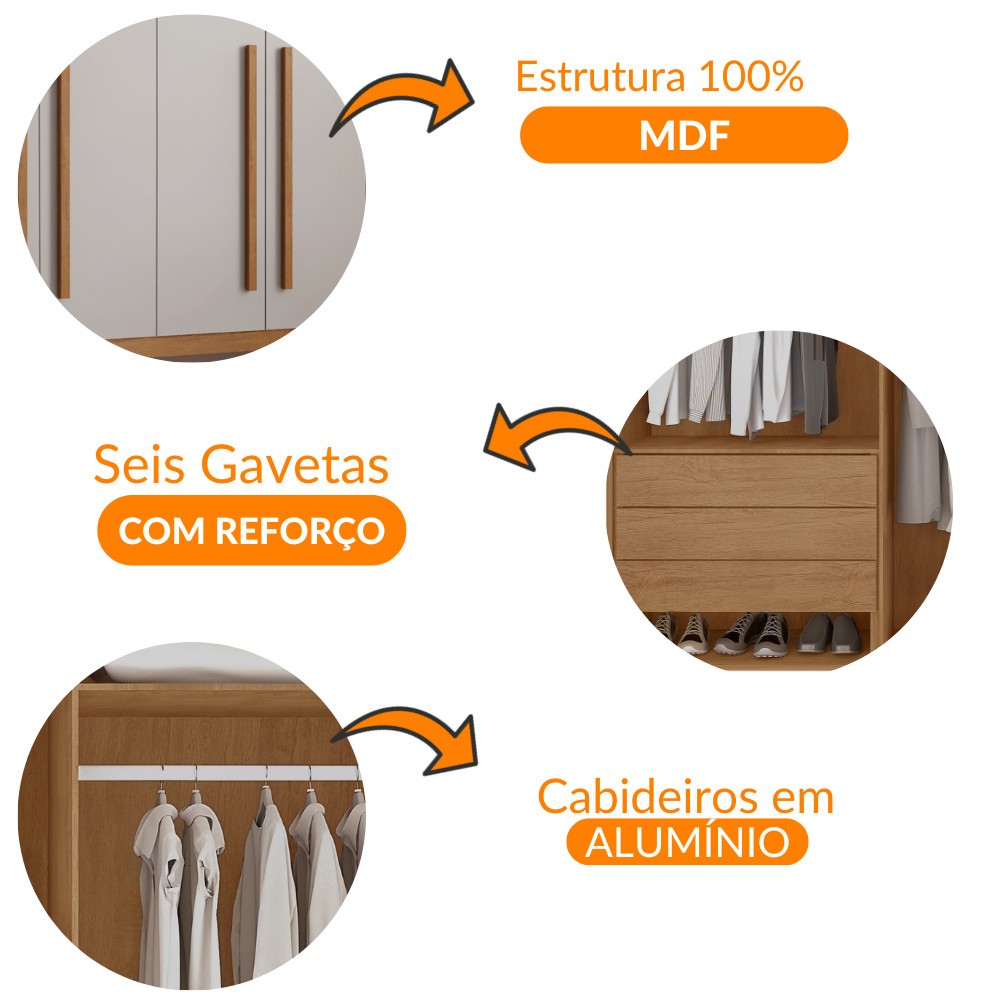 Guarda Roupa Casal Maya 100 MDF 6 Portas e 6 Gavetas - Rufato