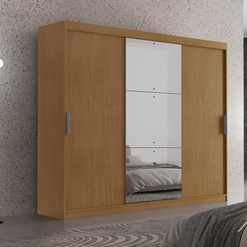 Guarda Roupa Casal Vitor Premium com 3 Portas com Espelho e 6 Cabideiros Moderna