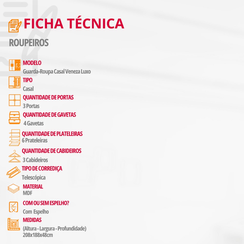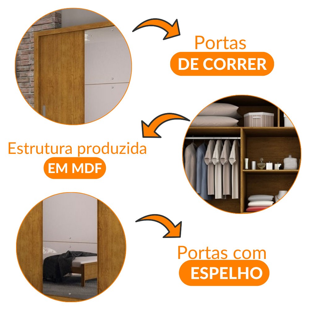 Guarda Roupa Casal Veneza Luxo com 3 Portas Rufato