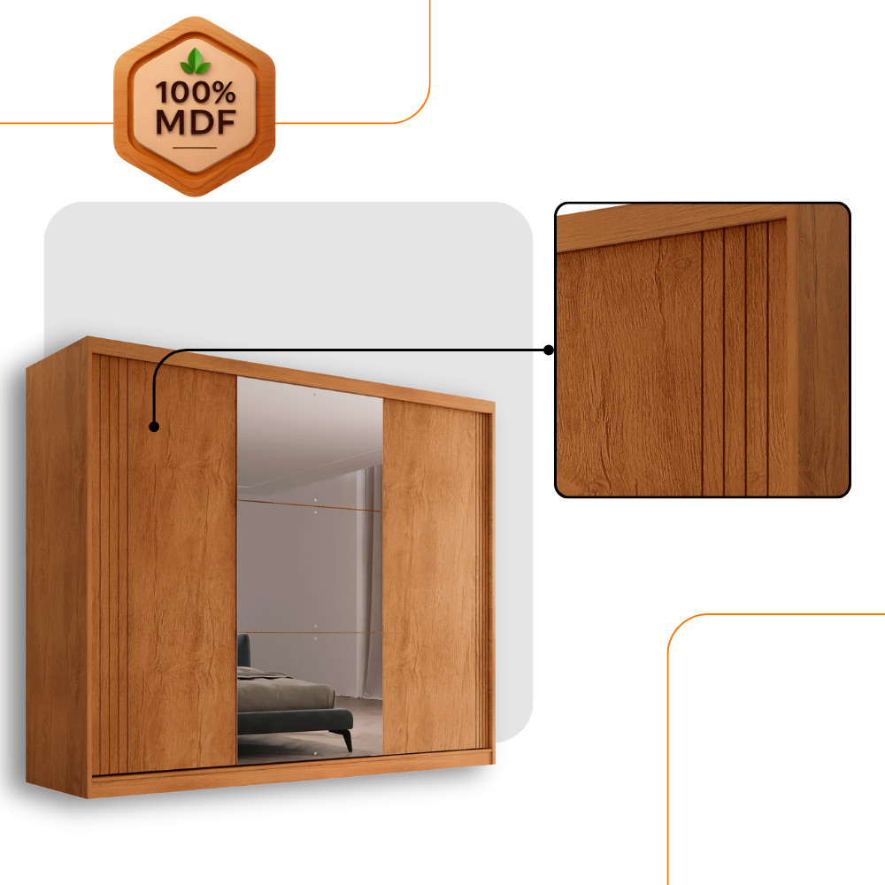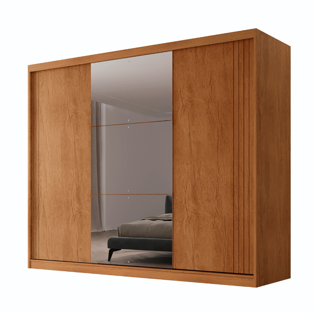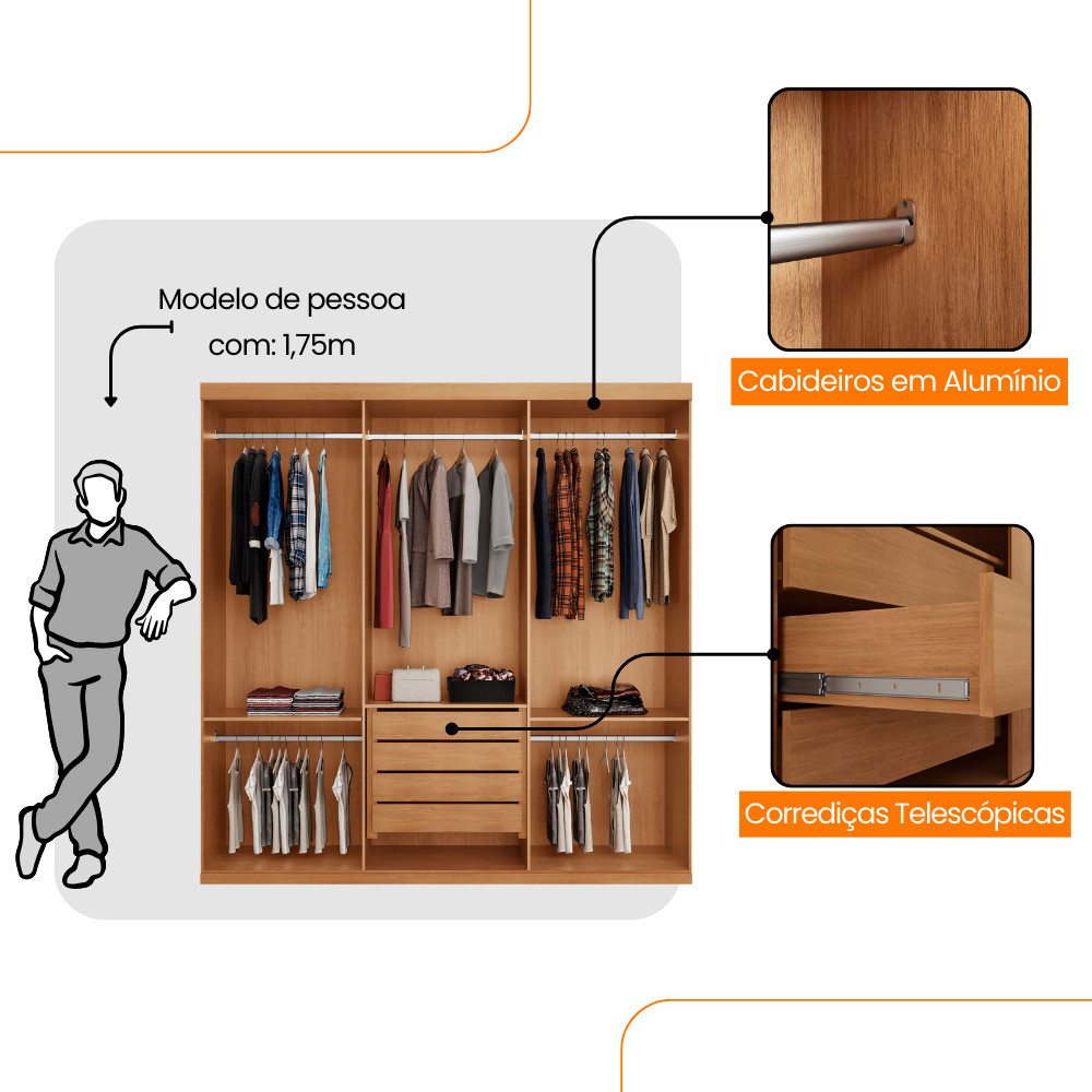Guarda Roupa Casal Connor MDF 3 Portas e 4 Gavetas com Espelho Moderna Mobília
