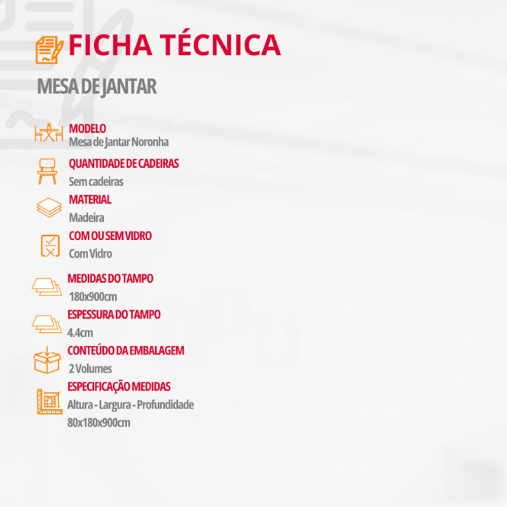 Mesa para Sala de Jantar Noronha 180cm Madeira com Vidro Moderna Mobilia