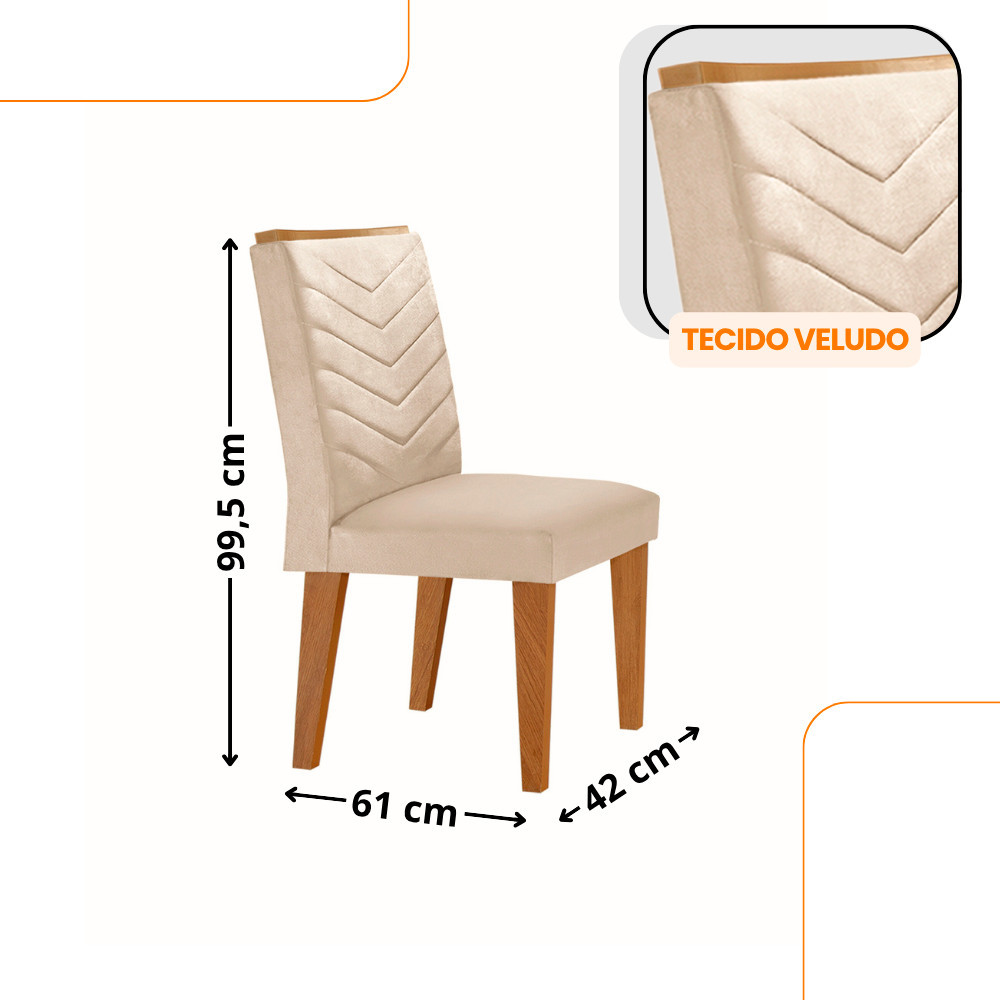 Sala de Jantar Mesa 90cm Olímpia em MDF com Vidro Canto Copo 4 Cadeiras Liz Moderna Mobilia