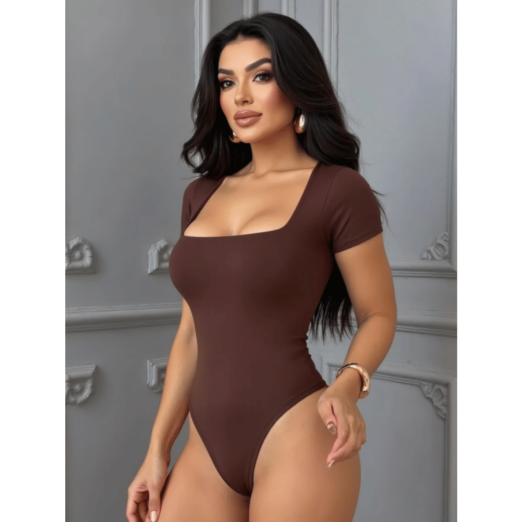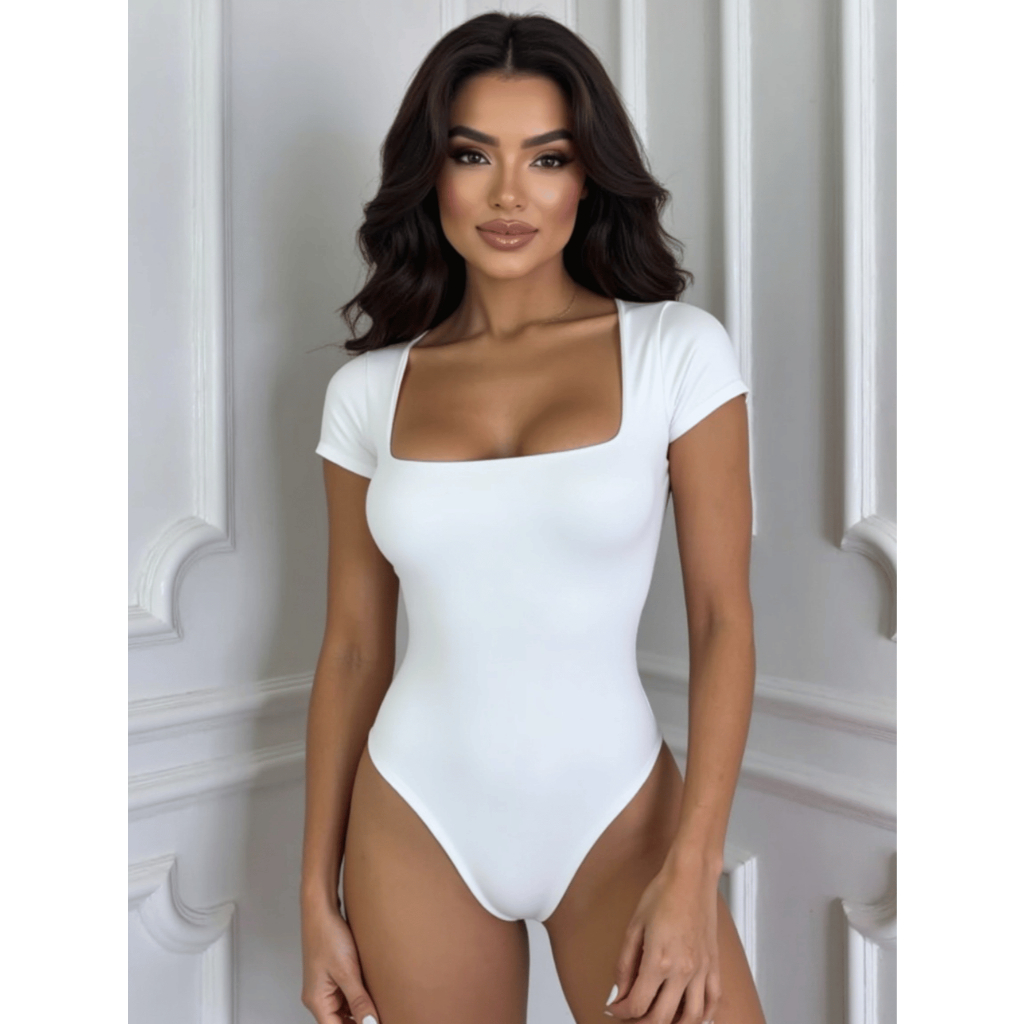 KIT 3 OU 1 UNIDADE Body Feminino Manga Curta Decote Quadrado Suplex Manguinha Decotado Forro Duplo Tecido Premium