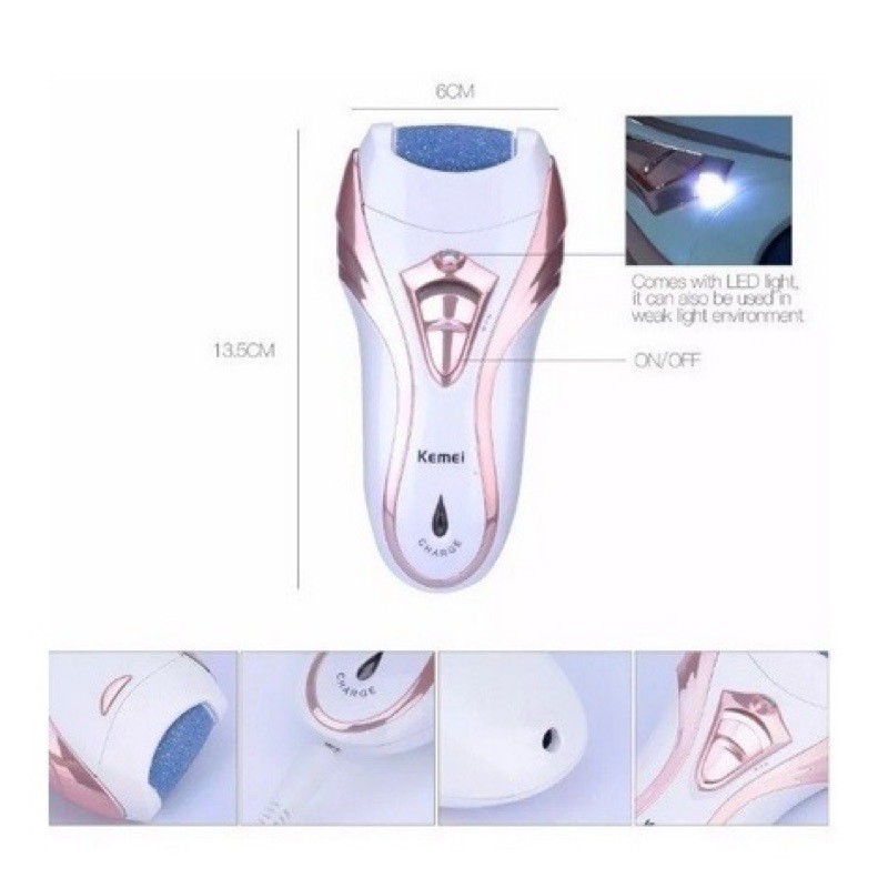 Depilador Elétrico Kemei KM-3010 Recarregável 3 em 1 Bivolt Com Lixador de pés e Aparador de pelos
