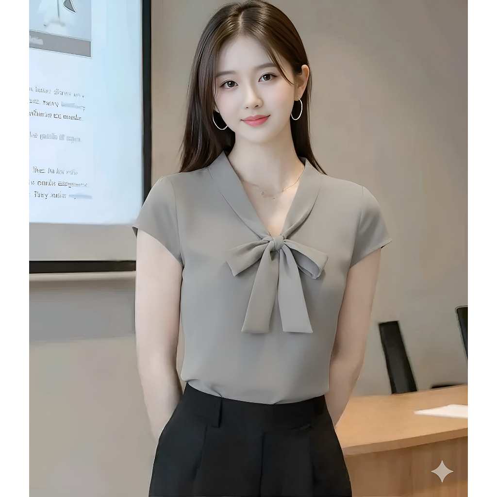 Blusa Camisa Feminina Laço Gravatinha blusa plus size feminina 14 cores Moda Evangelica Coreana