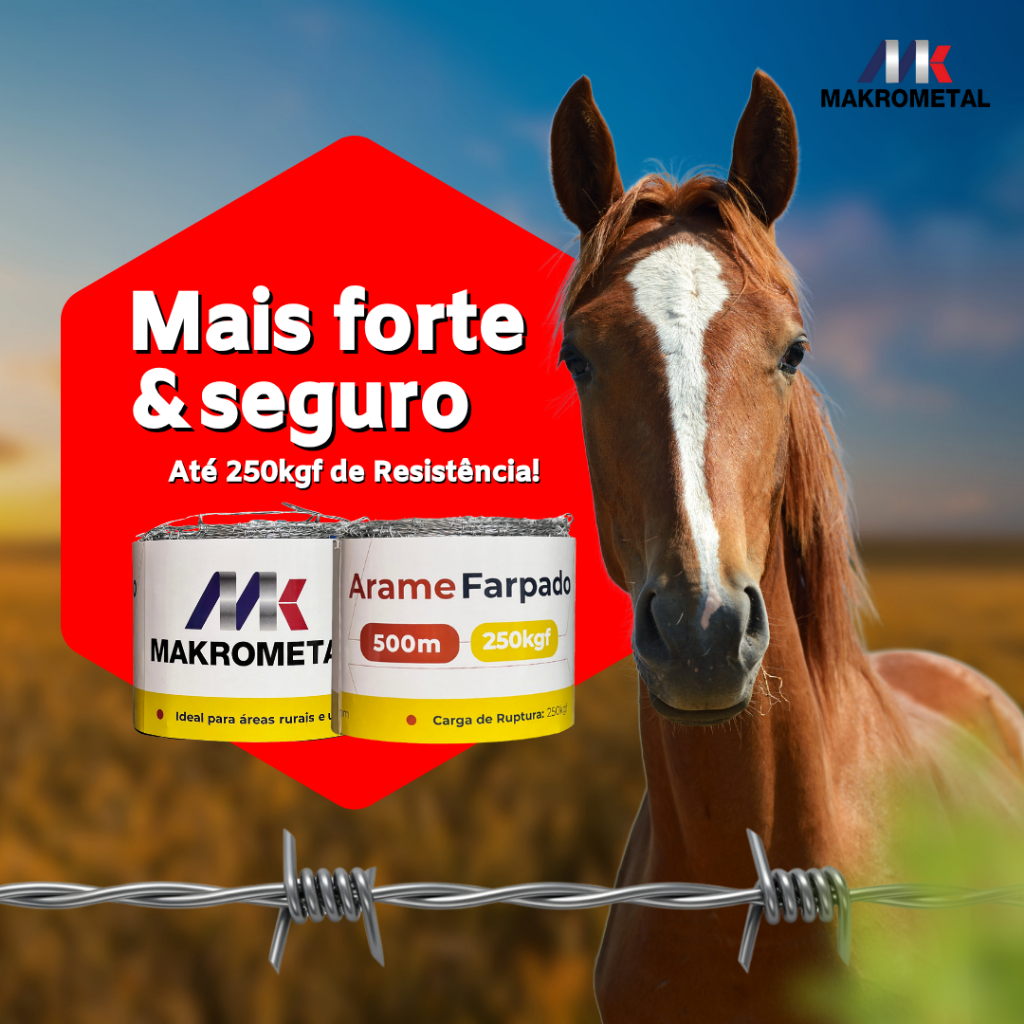 Arame Farpado Makrometal 500m Galvanizado Cerca Rural Forte Gado Alta Resistência