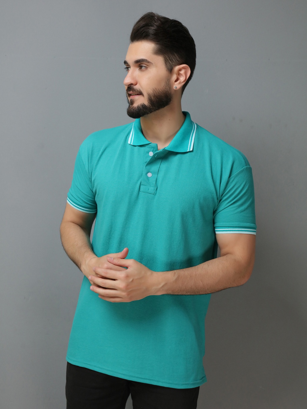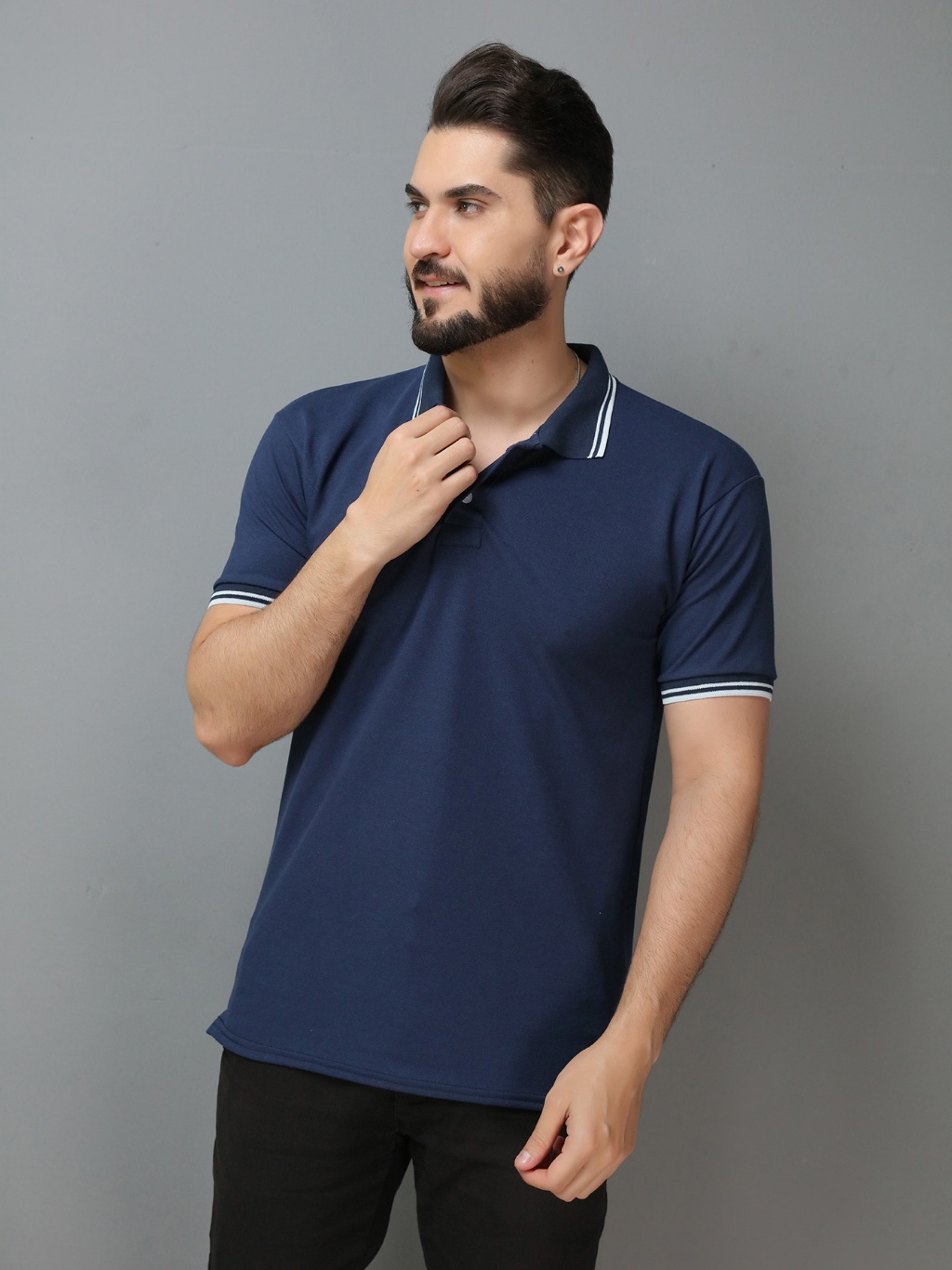 Camisa Gola Polo Masculina GOLA LISTA(P M G GG G1 G2 G3) Camiseta de Algodão piquet Roupas casuais de escritório