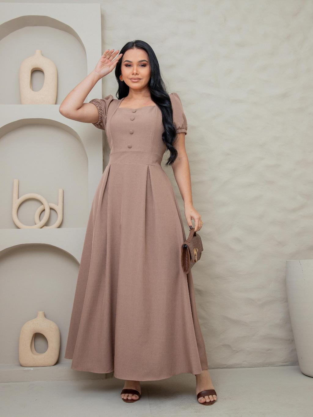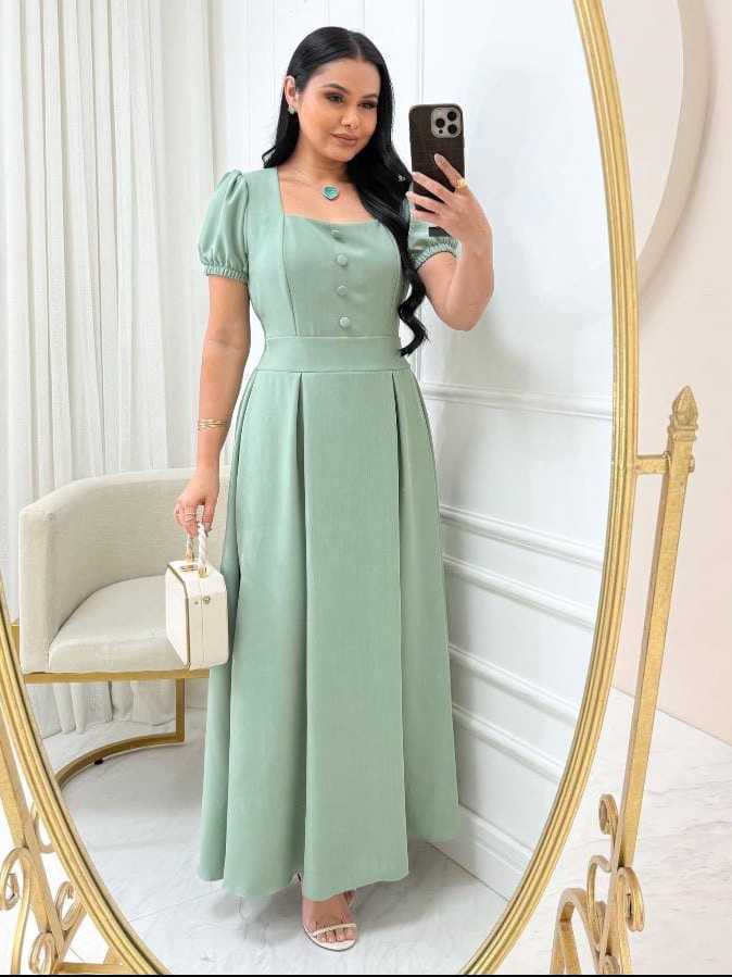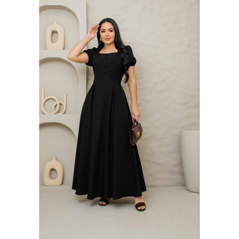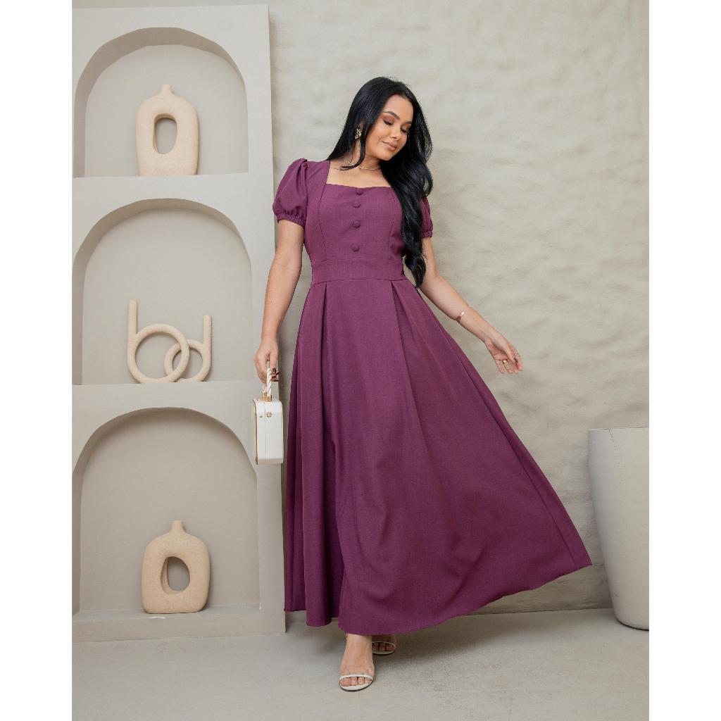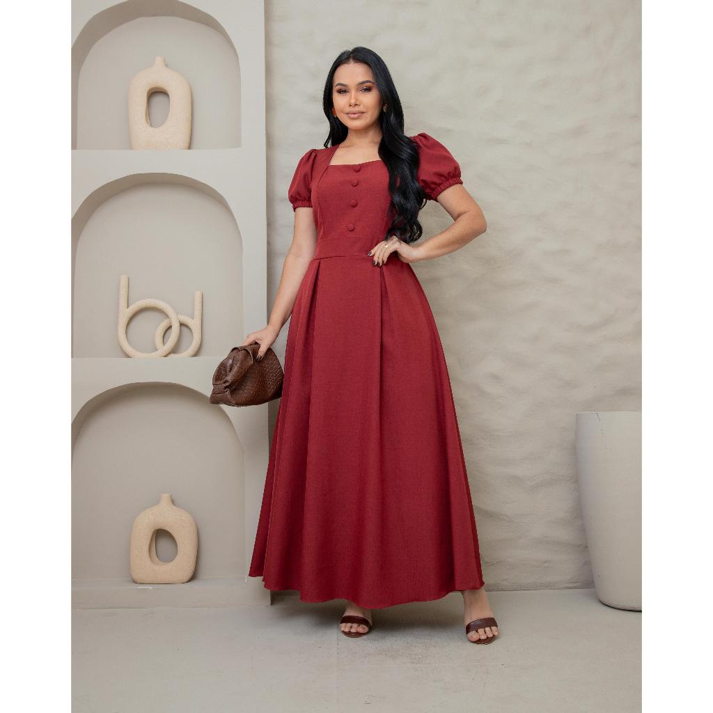 Vestido Longo Feminino Evangélico Elegante manga princesa