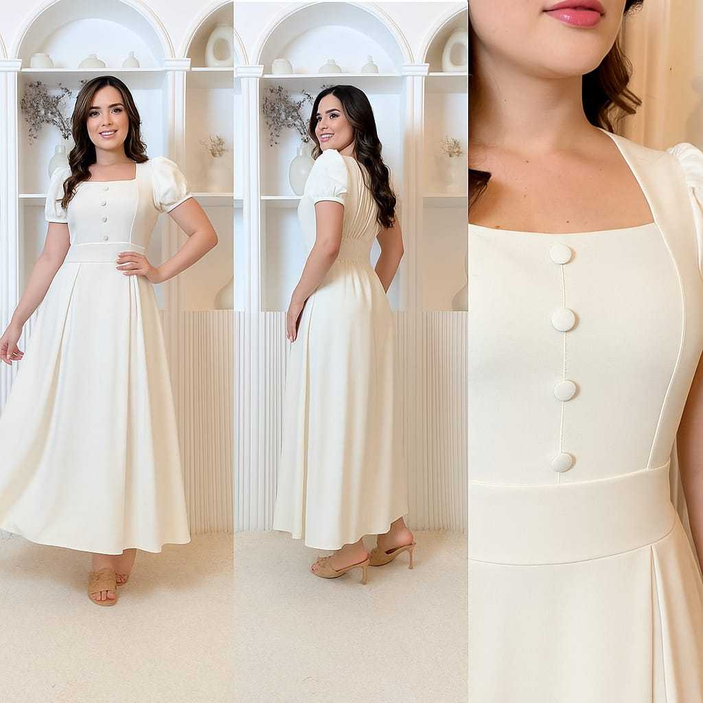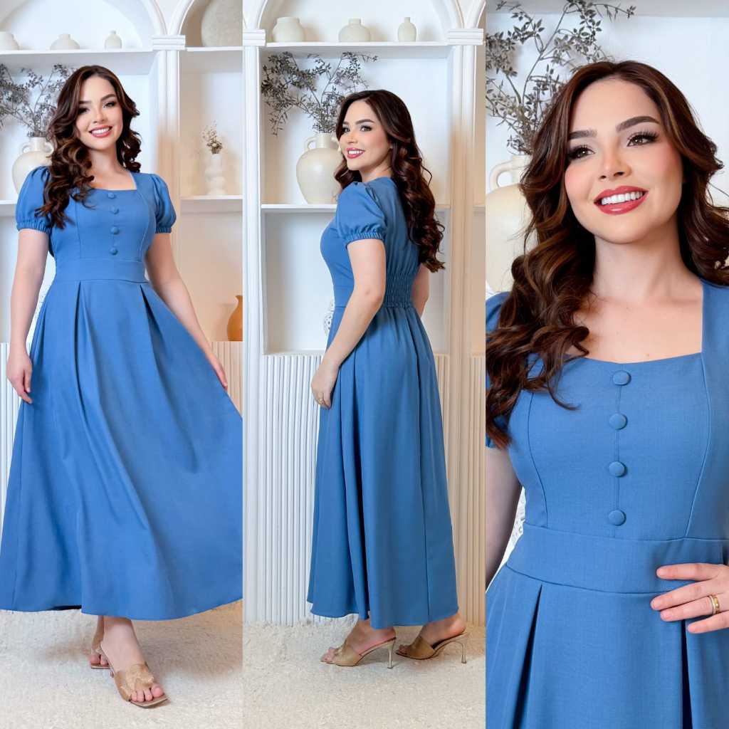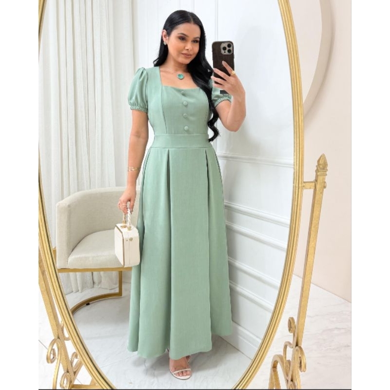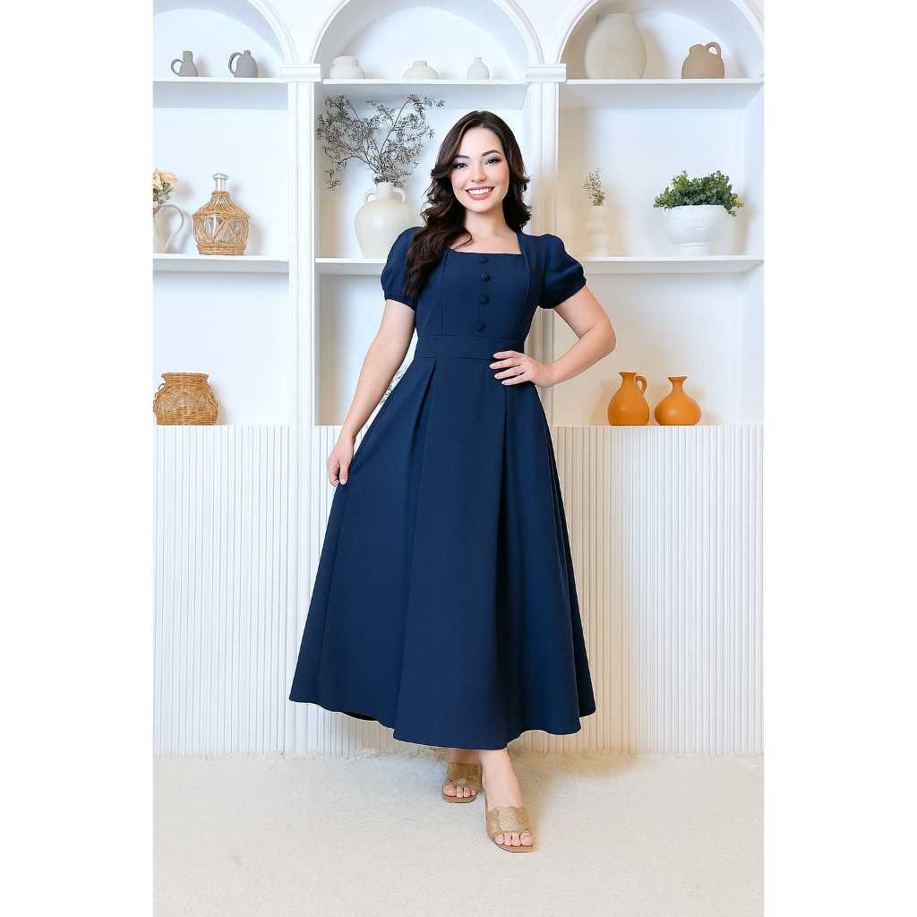 Vestido Longo Feminino Evangélico Elegante manga princesa