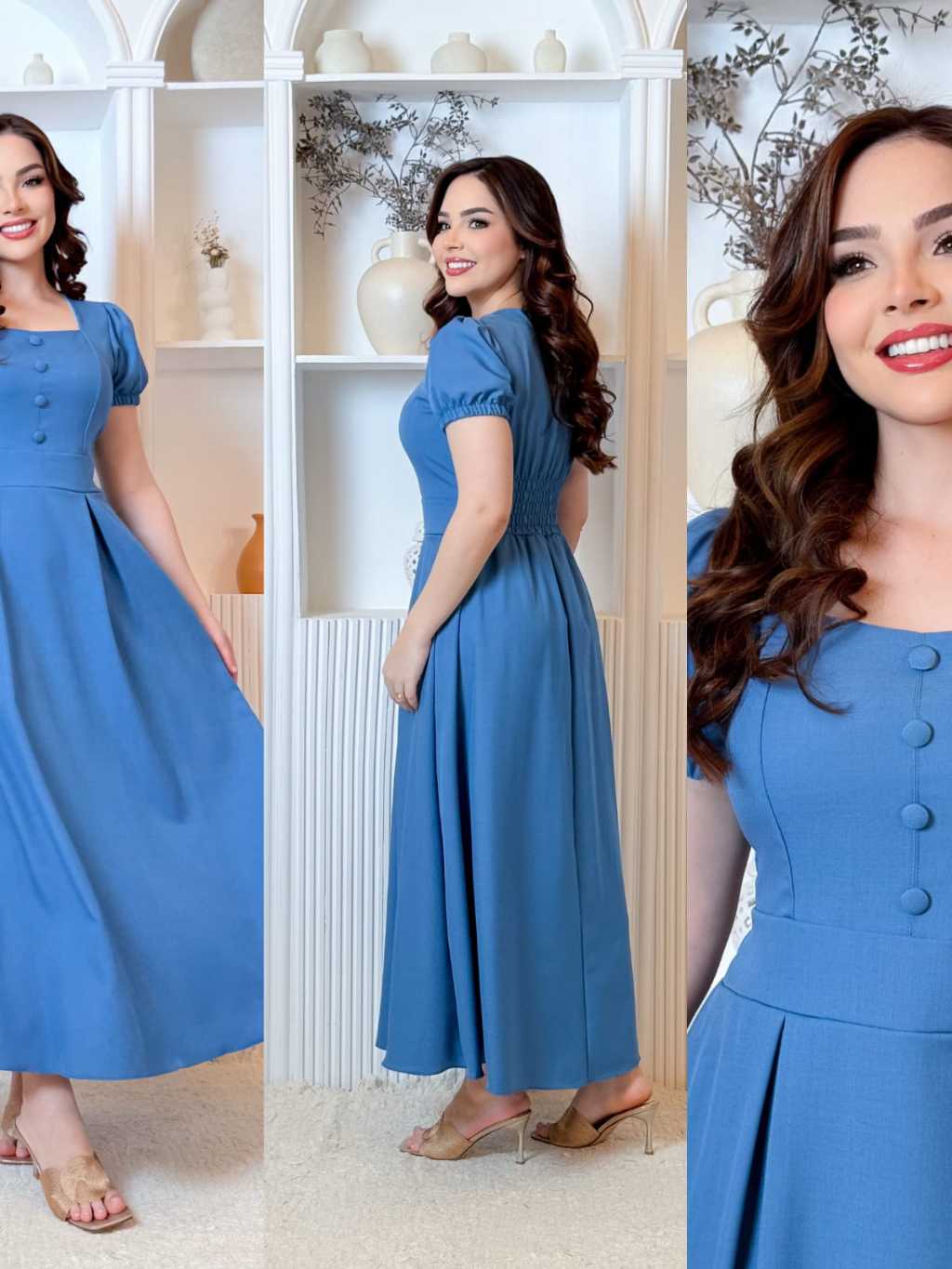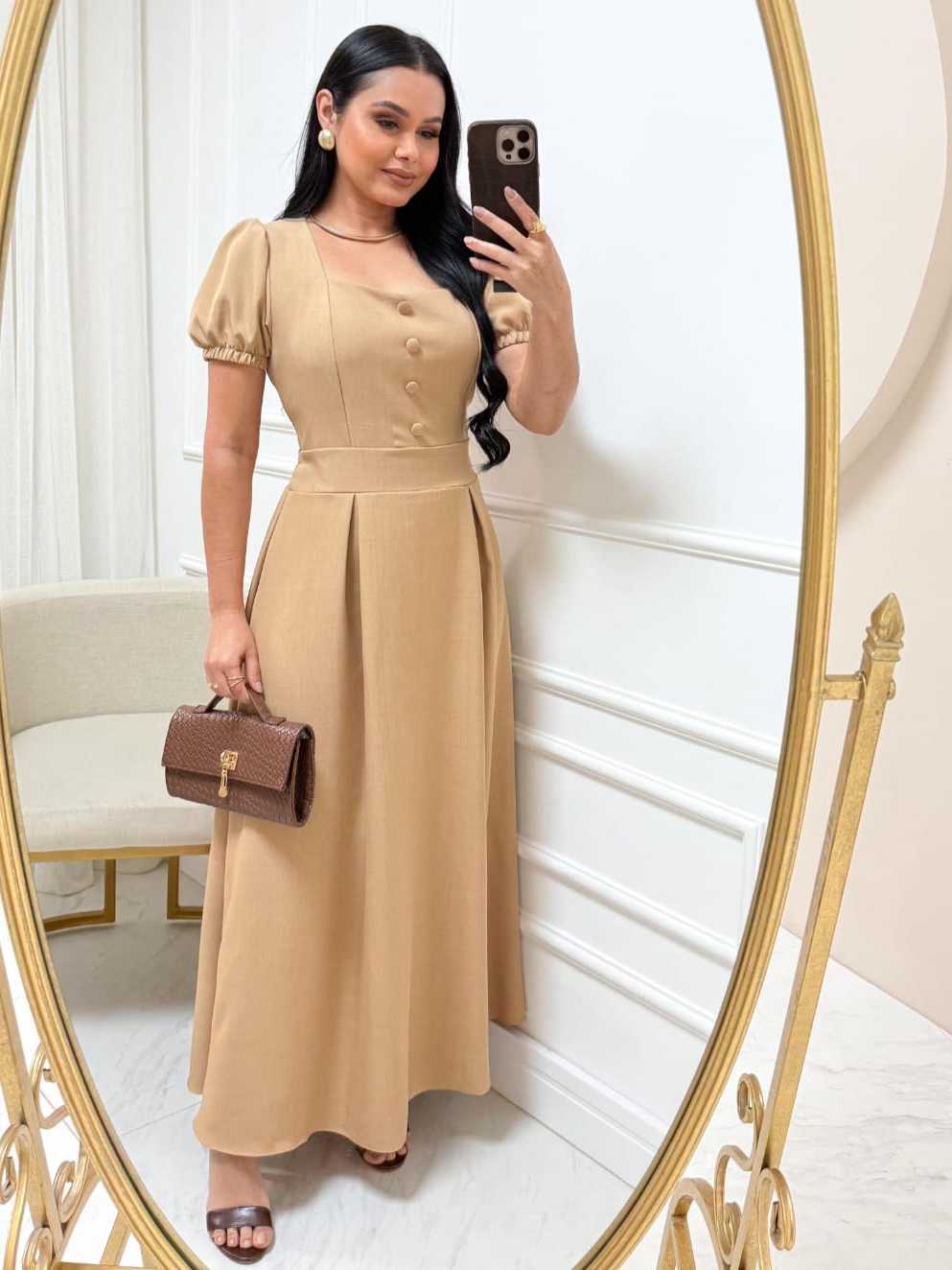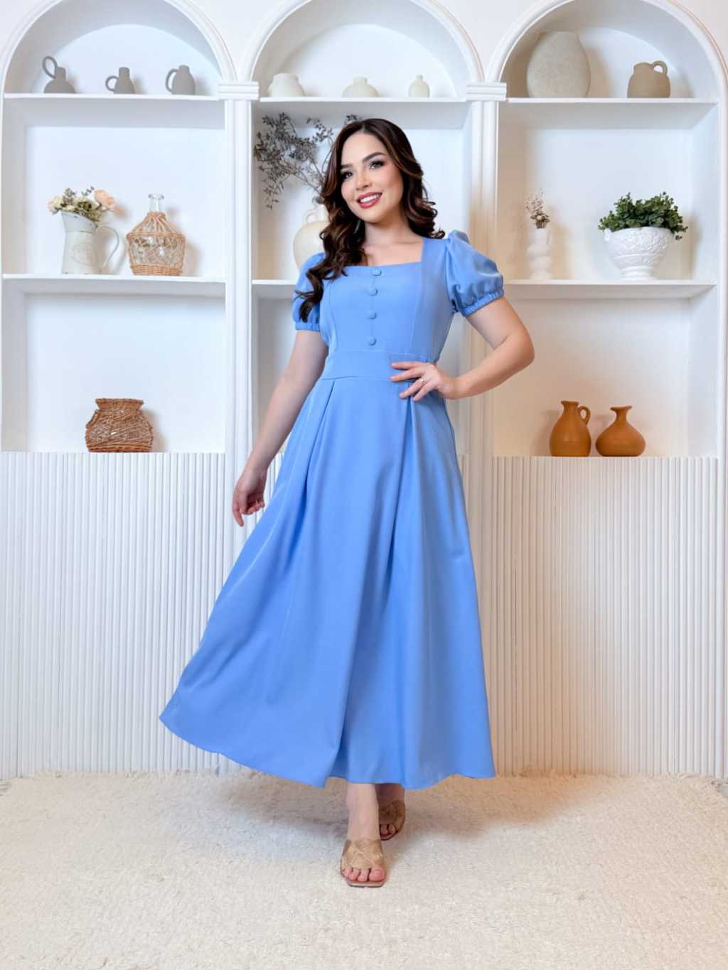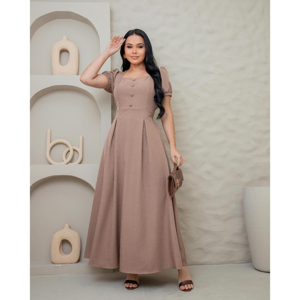 Vestido Longo Feminino Evangélico Elegante manga princesa