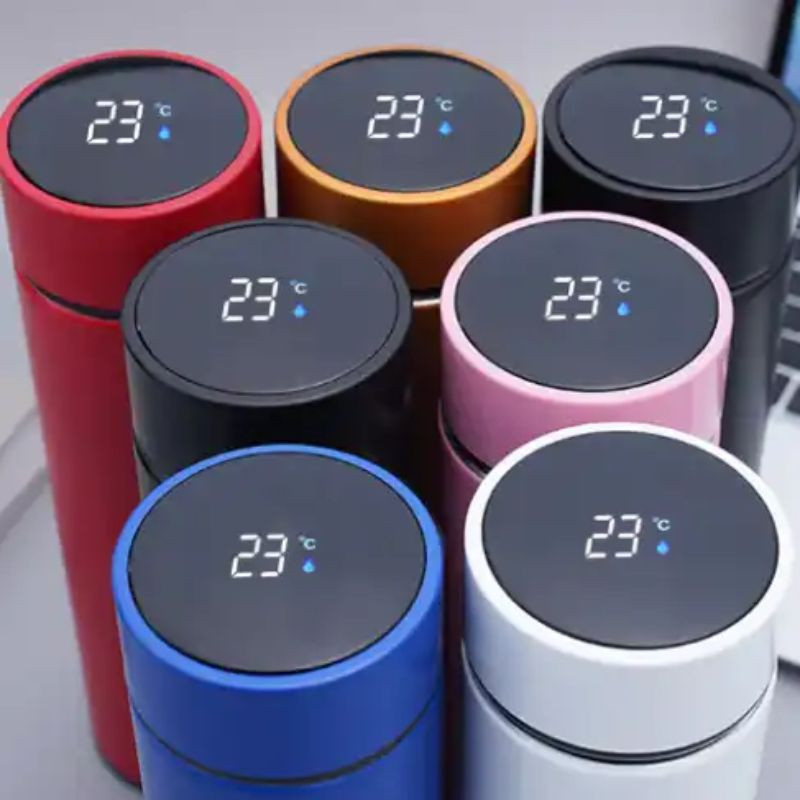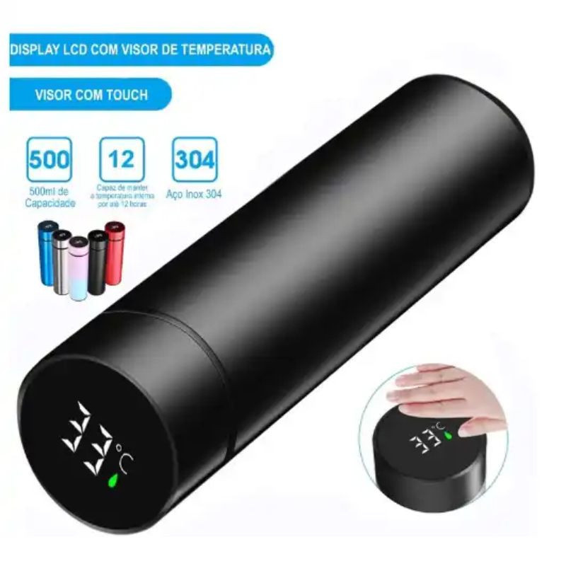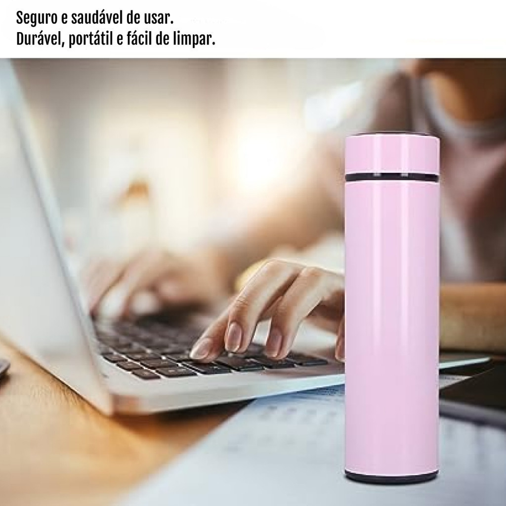 Kit 2 Garrafas Térmica Em Aço Inox Com Termômetro Digital 500ml Led Moda