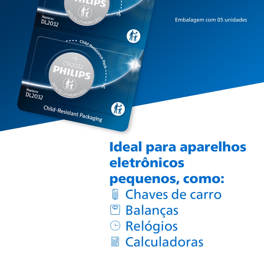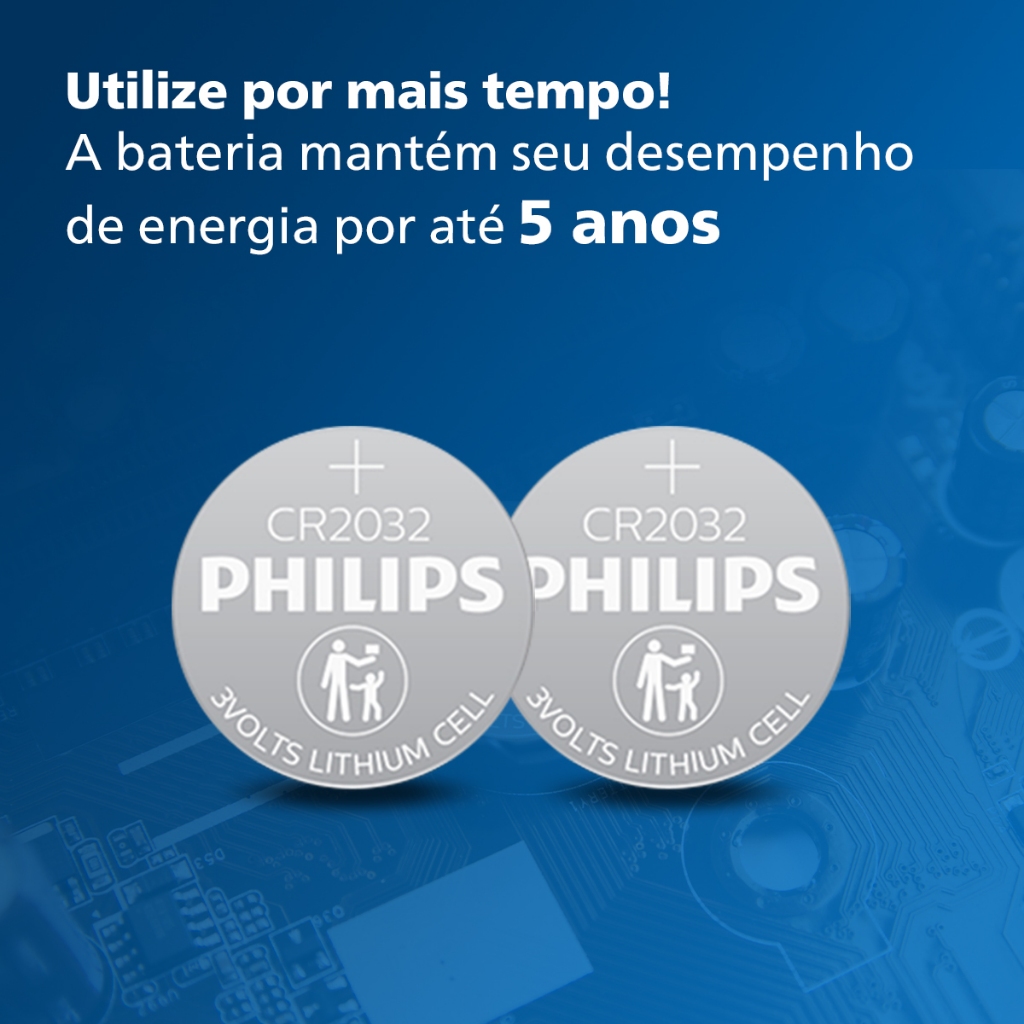 Pilha CR2032 3V Philips Bateria Moeda 5 unidades