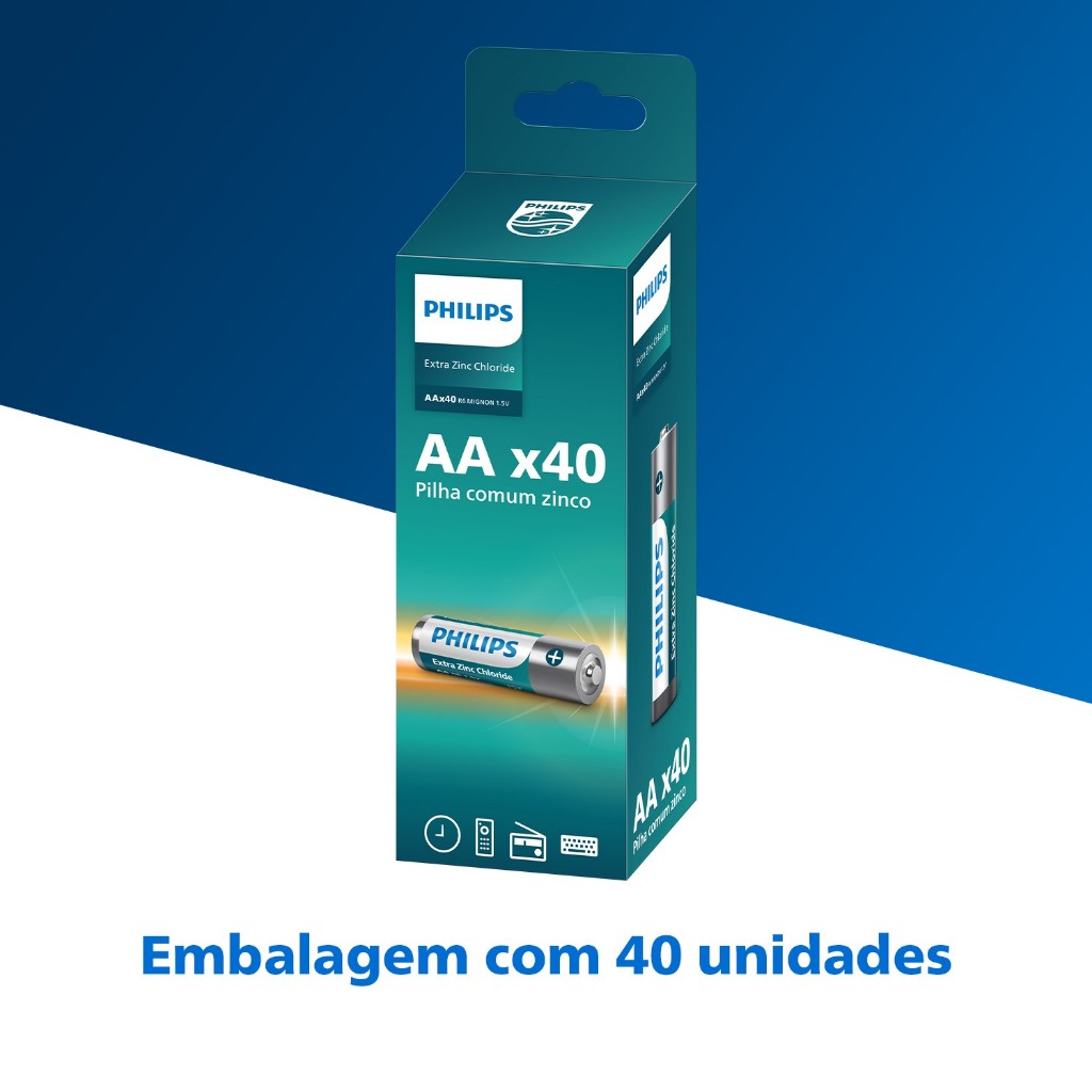 Pilha Zinco AA Philips Bateria Carvão 2A Pequena Tubo kit com 40 unidades
