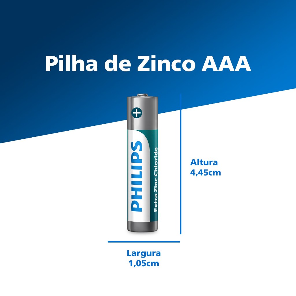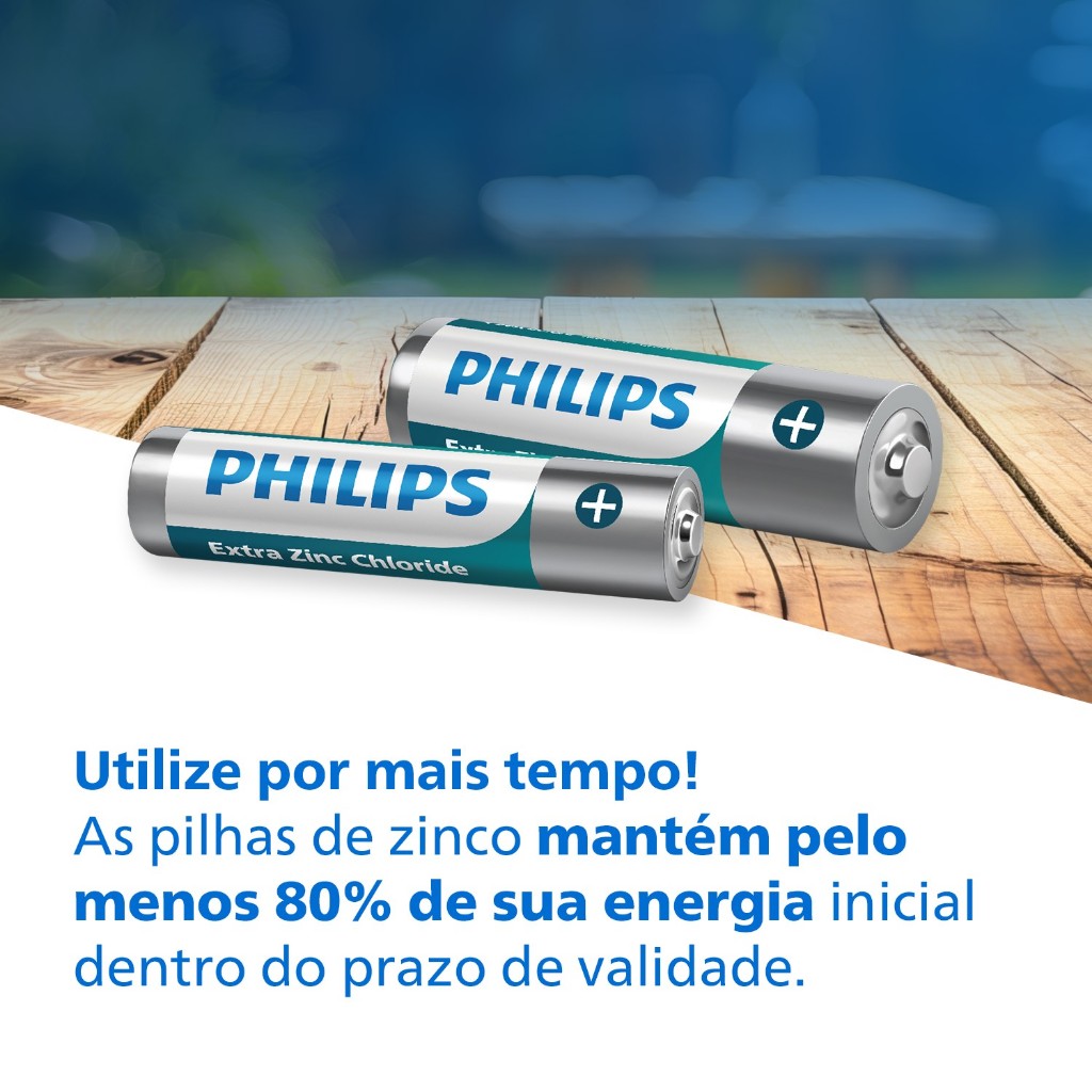 Pilha Zinco AAA Philips Bateria Carvão 3A Palito Tubo kit com 40 unidades
