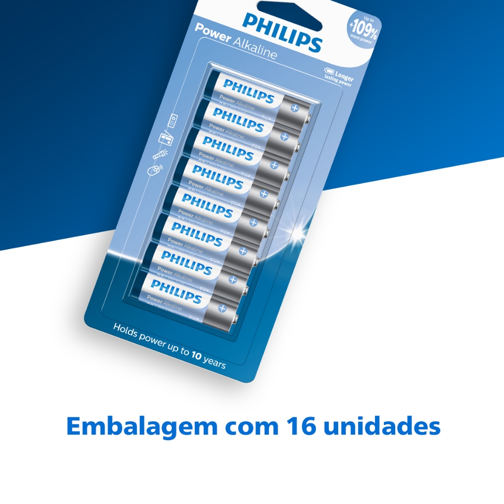 Pilha Alcalina AA Philips Bateria 2A Pequena kit 32 unidades