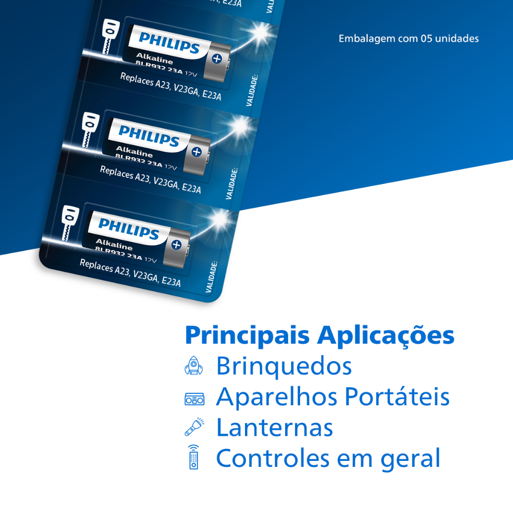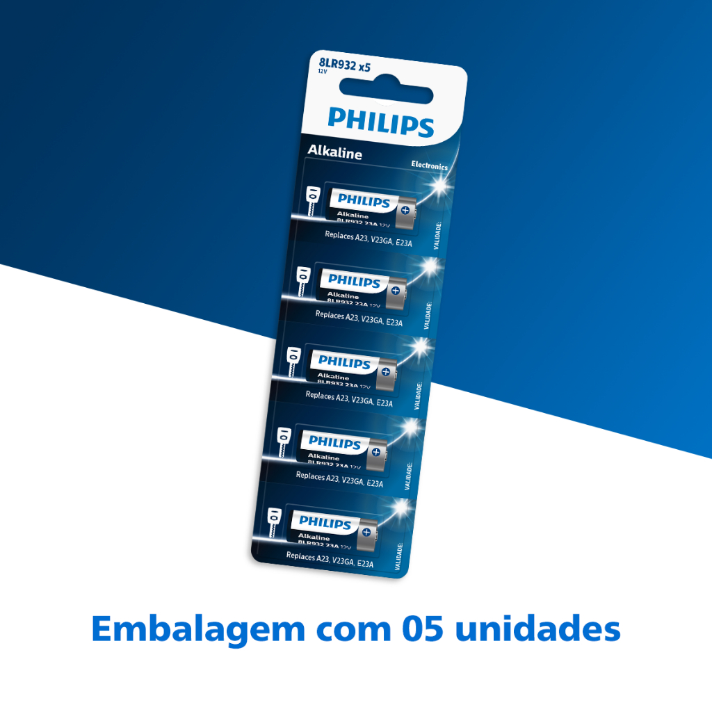 Pilha Alcalina 23A Philips Bateria MN21 V23GA A23 kit 10 unidades